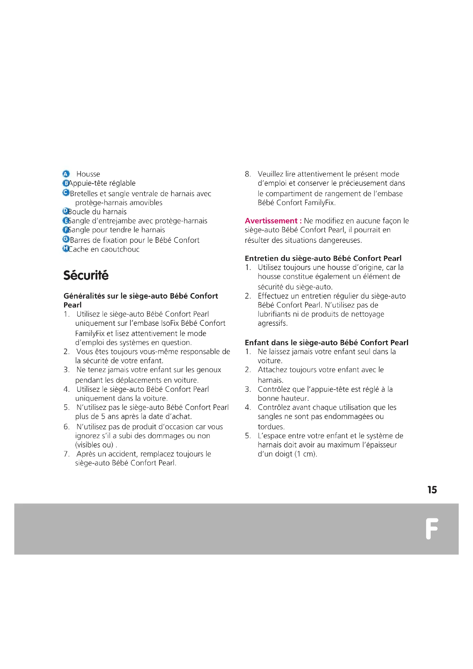 siège-auto Bébé Confort Pearl, il pourrait en résulter des situations dangereuses. Entretien du siège-auto Bébé Confort Pearl