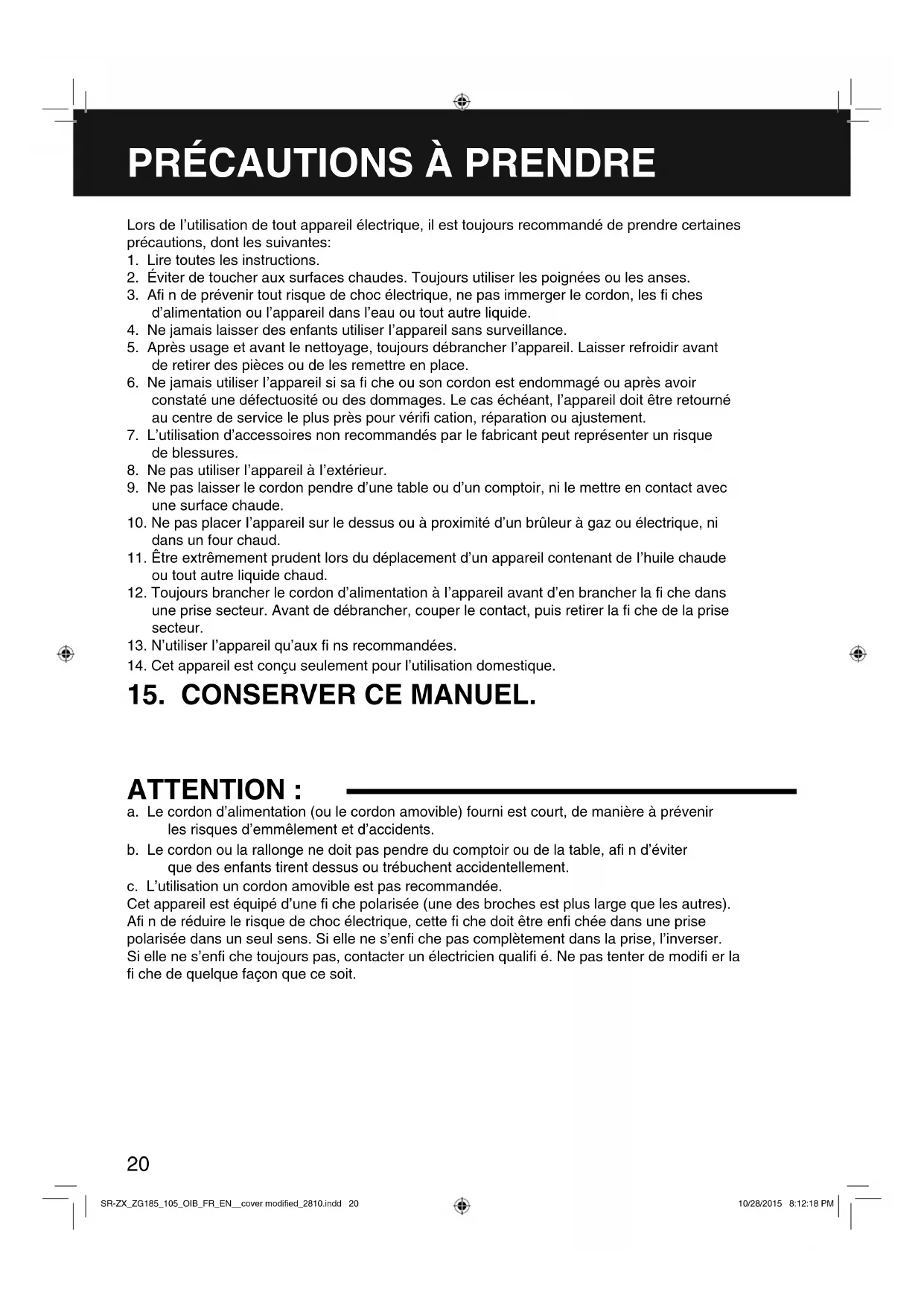 | N° de modèle | SR-ZX185 SR-ZG185 SR-ZX105 SR-ZG105 | ||