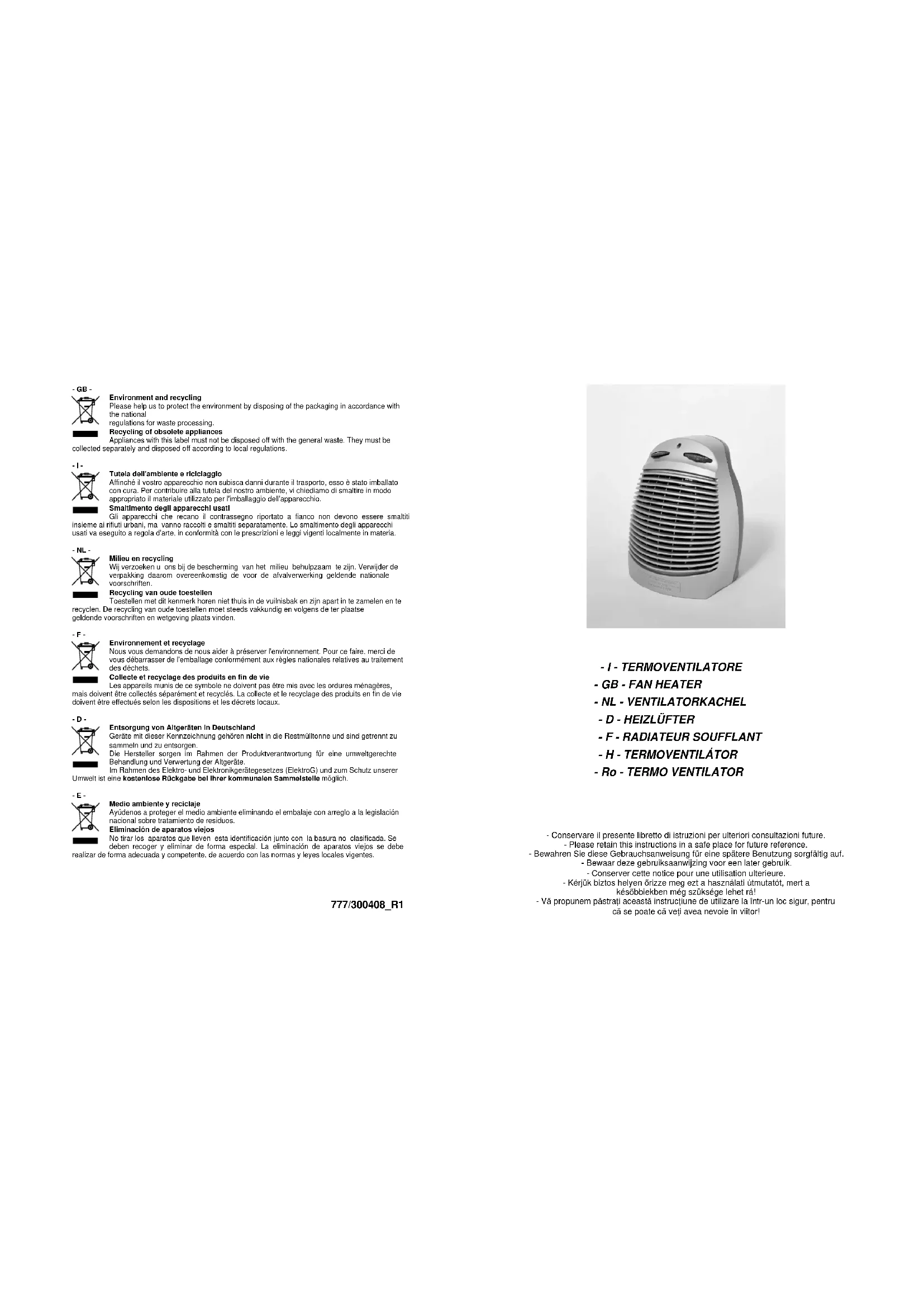 □ Ce thermoventilateur ne demande aucun entretien particulier ;