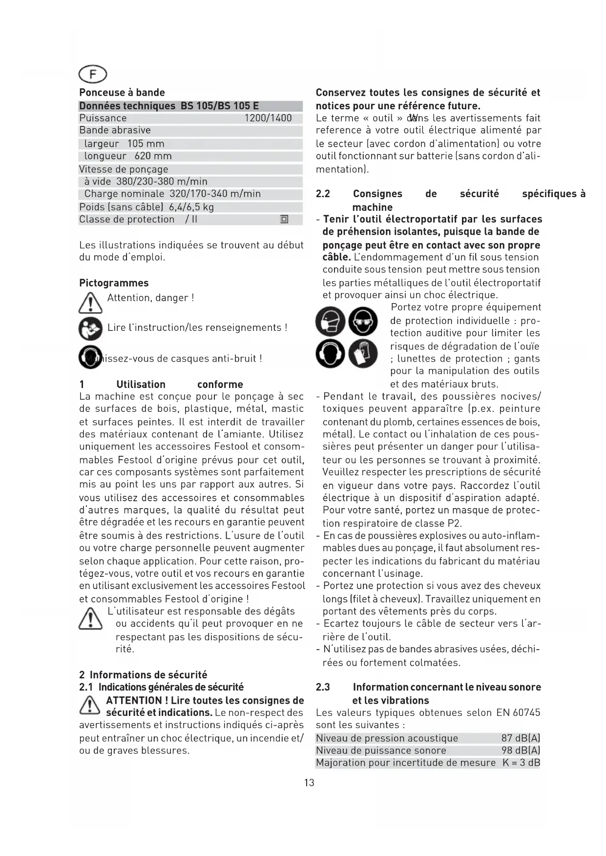 MODE D'EMPLOI BS 105 FESTOOL