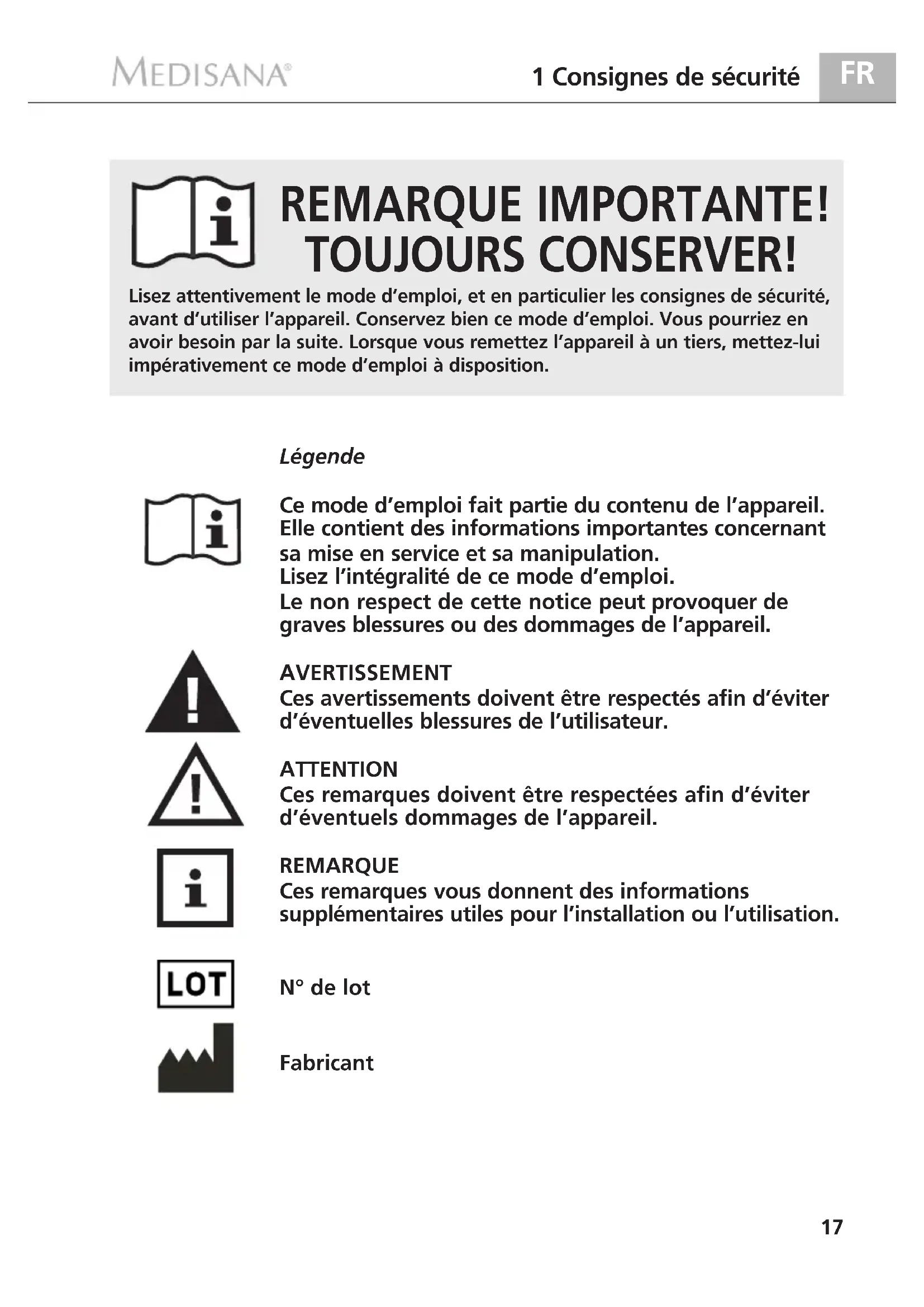 Afin d'obtenir les résultats souhaités et de pouvoir profiter longtemps des avantages de votre FRI MEDISANA, nous vous recommandons de dire attentivement les conseils d'utilisation et d'entretien suivants.