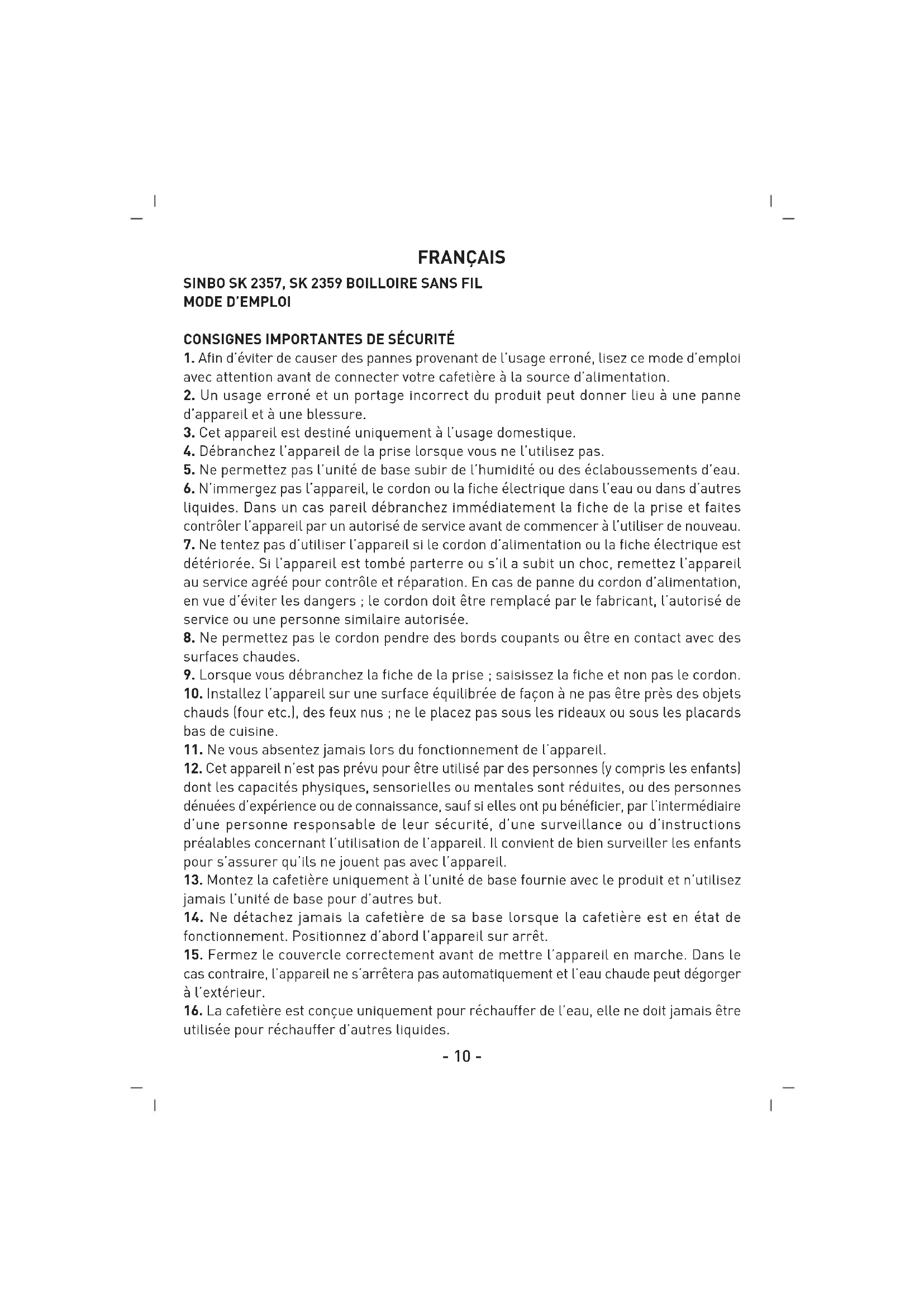 Retrouvez gratuitement la notice de l'appareil SK2359 SINBO au format PDF.