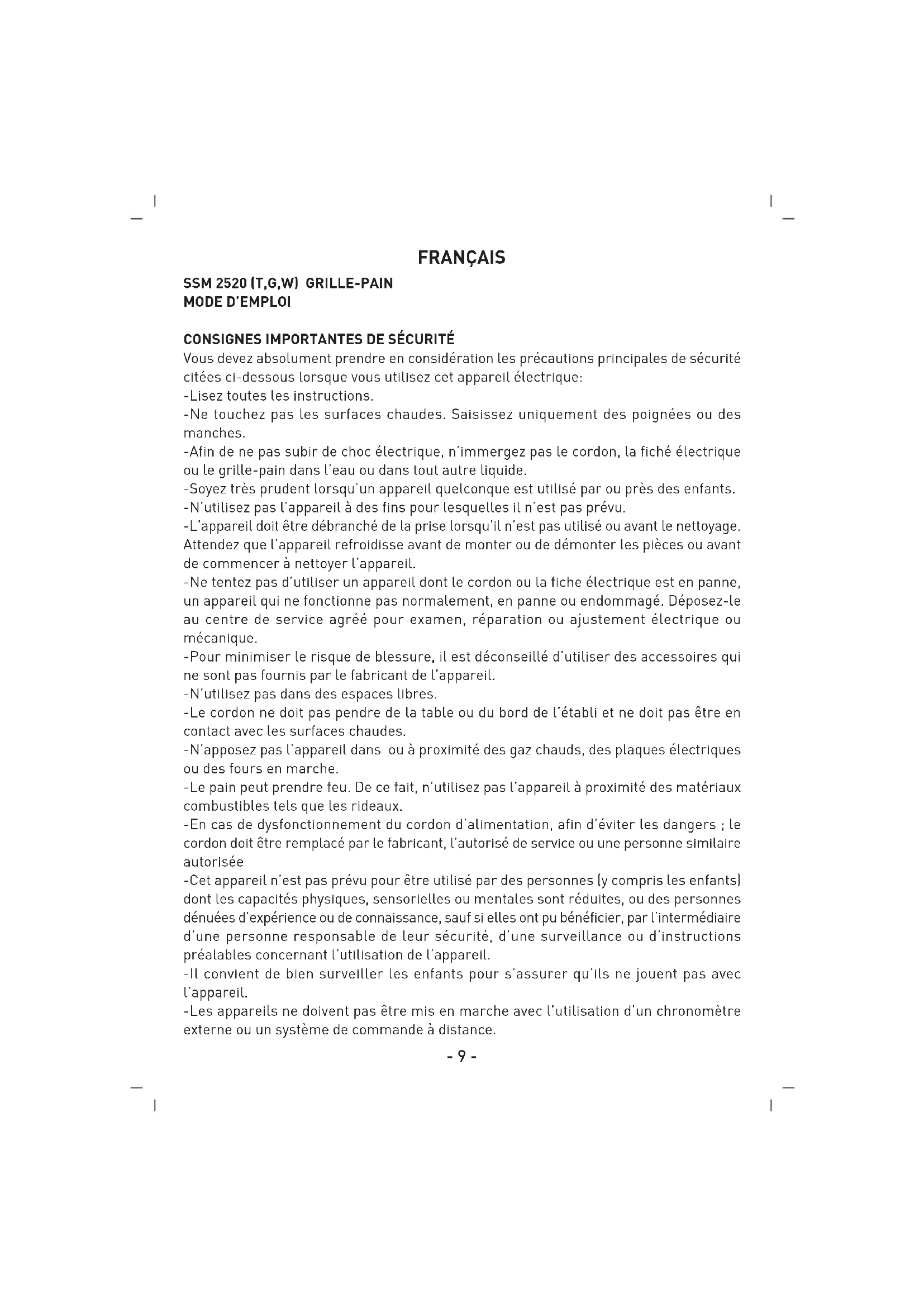 Retrouvez gratuitement la notice de l'appareil SSM 2520 SINBO au format PDF.