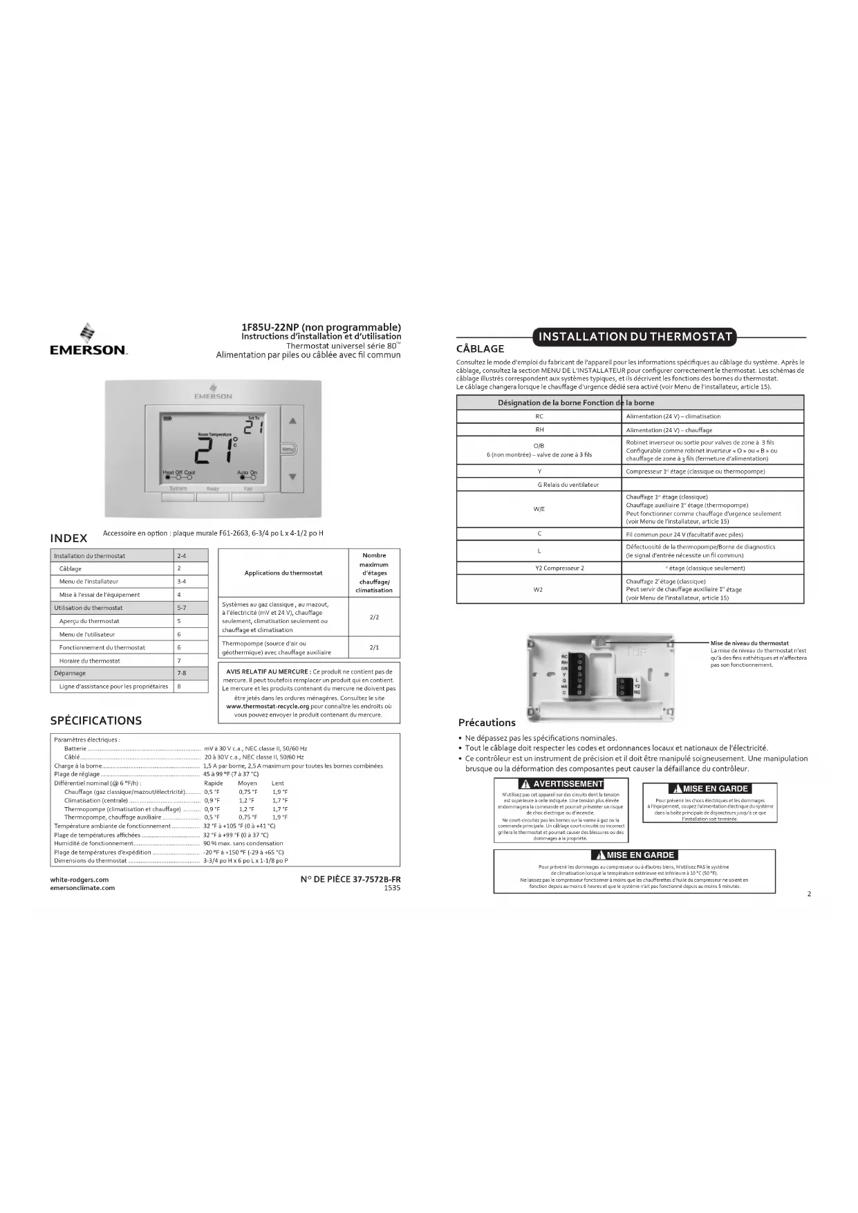 1F85U22NP - Thermostat Emerson - Notice d'utilisation et mode d'emploi gratuit