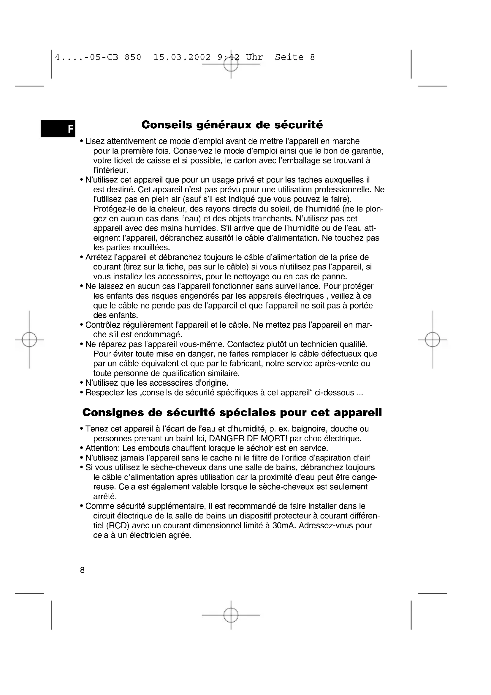 4....-05-CB 850 15.03.2002 9:42 Uhr Seite 7Conseils généraux de sécurité