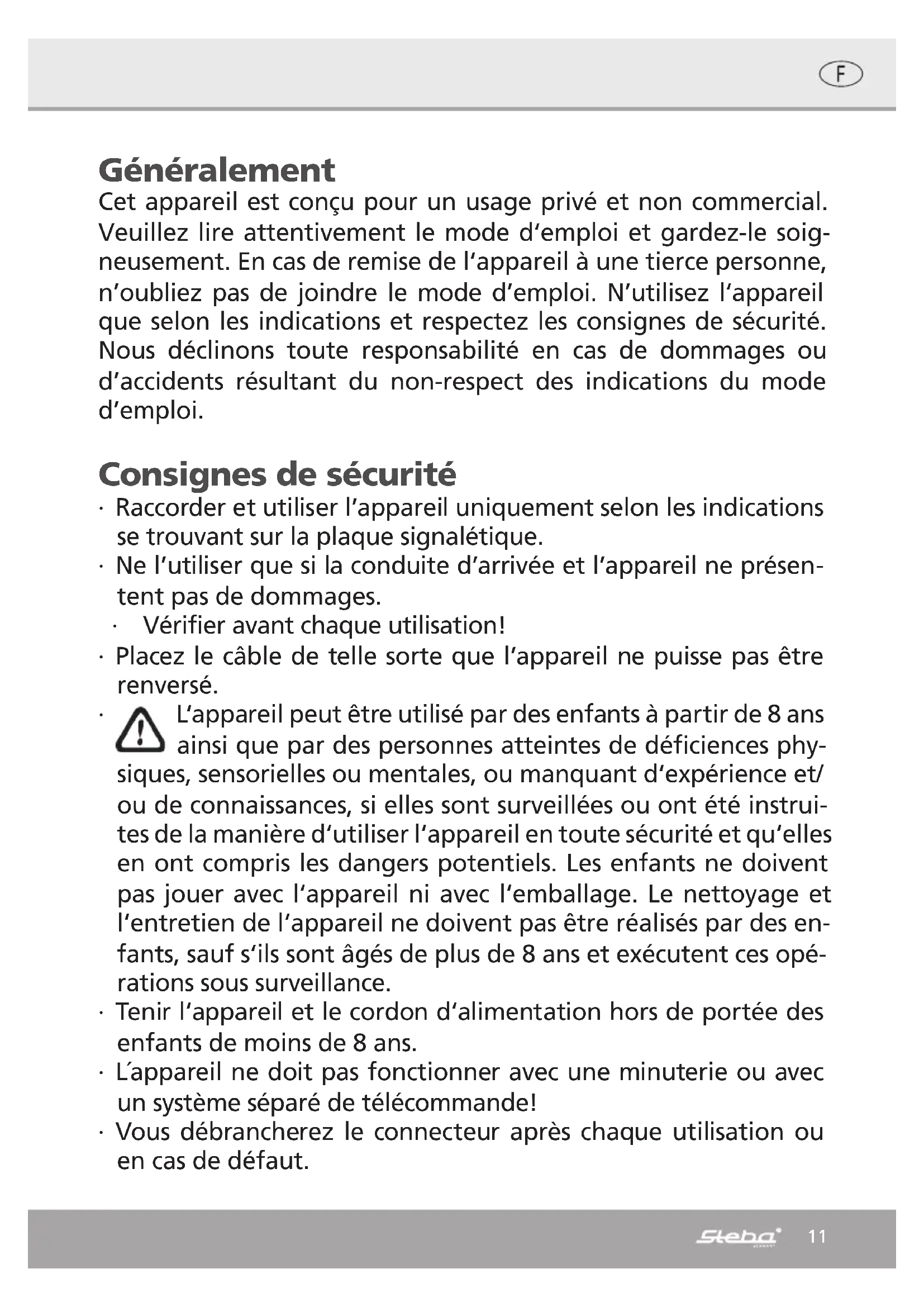 Retrouvez gratuitement la notice de l'appareil LB 9 STEBA au format PDF.