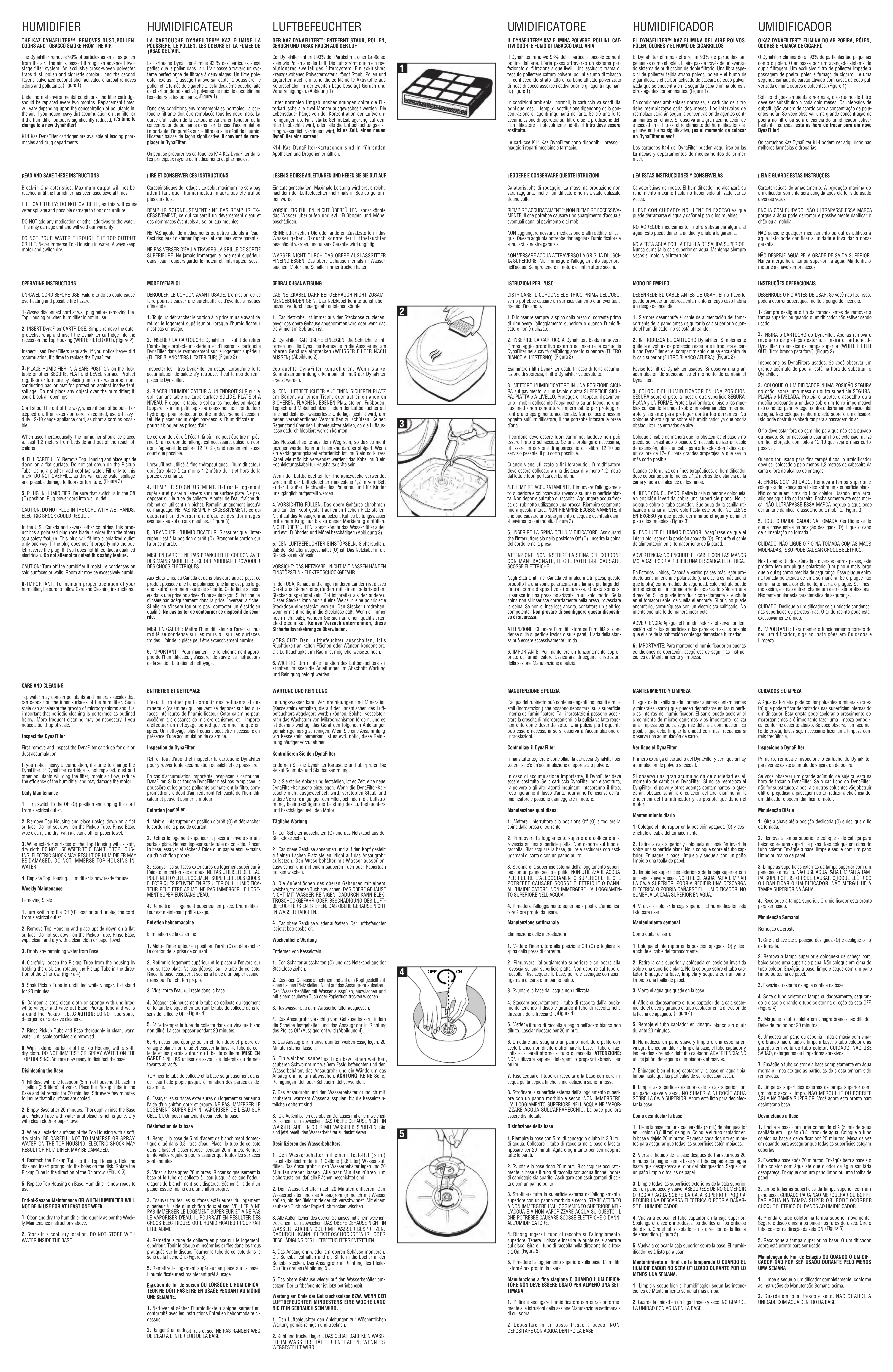 ’humidificateur doit toujours être débranché et vidé orsqu’il n’est pas en usage ou pendant qu’il est nettoyé.5. Ne jamais incliner ou déplacer l’humidificateur pendantqu’il est en marche. Le mettre à l’arrêt et le débrancher vant de le déplacer.
