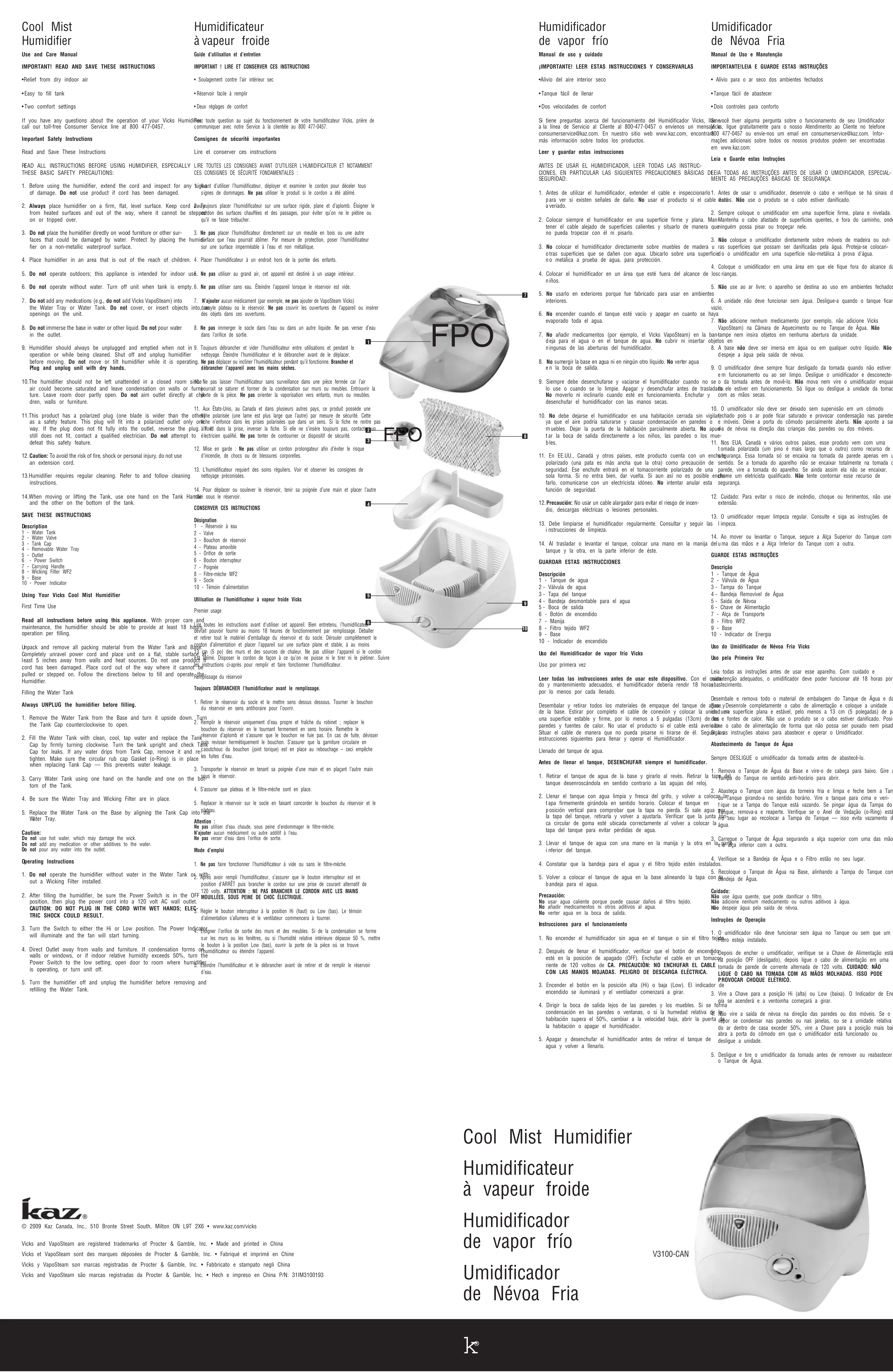 V3100 - Humidificateur Vicks - Notice d'utilisation et mode d'emploi gratuit