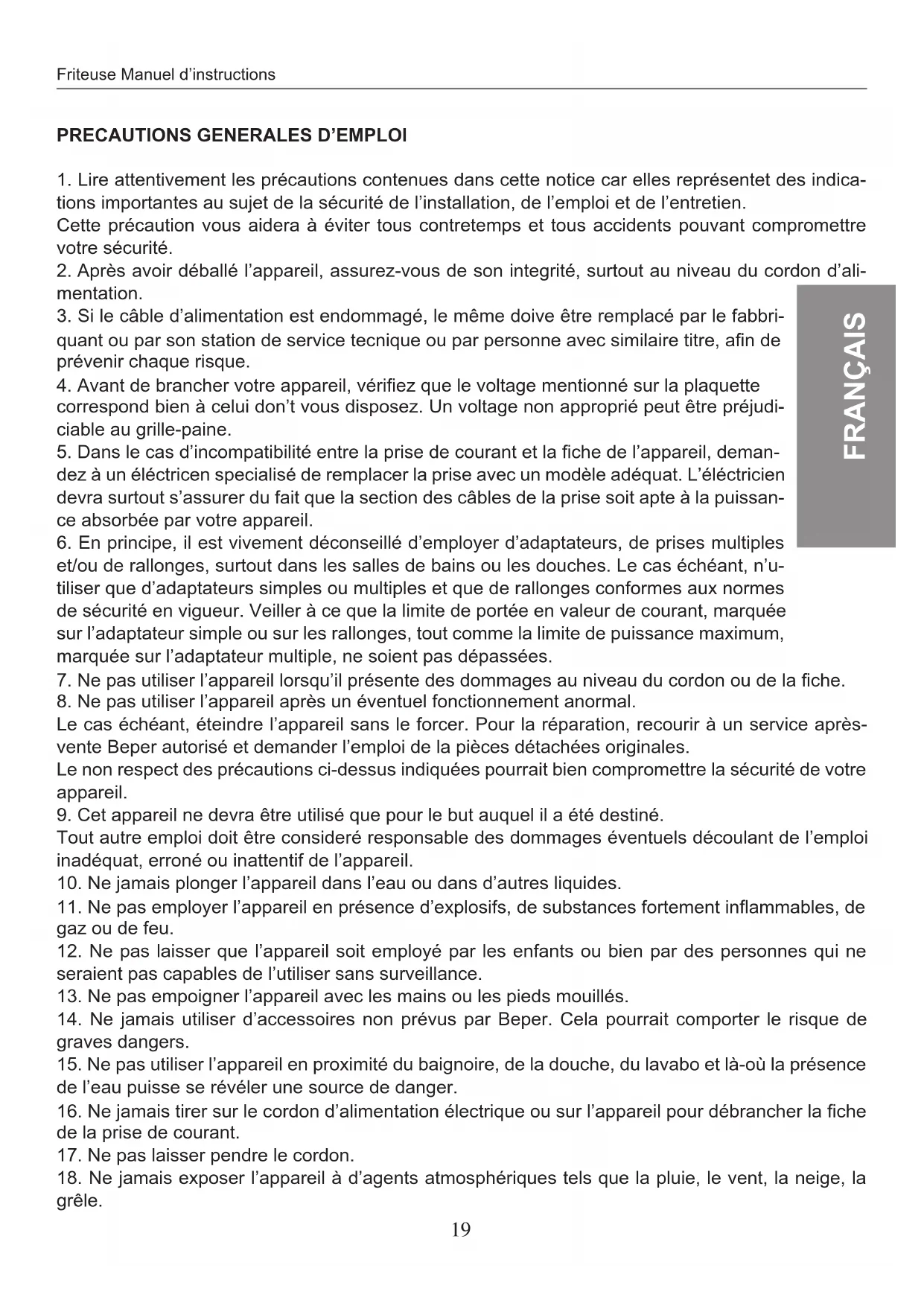 90.495N - Friteuse Beper - Notice d'utilisation et mode d'emploi gratuit