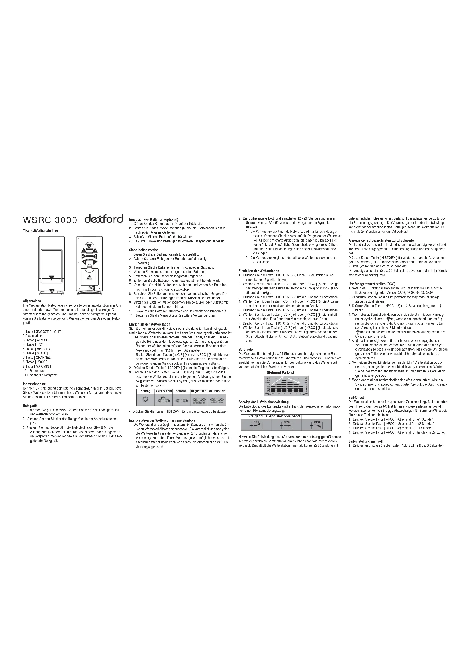 WSRC 3000 - Station Météo Dexford - Notice d'utilisation et mode d'emploi gratuit
