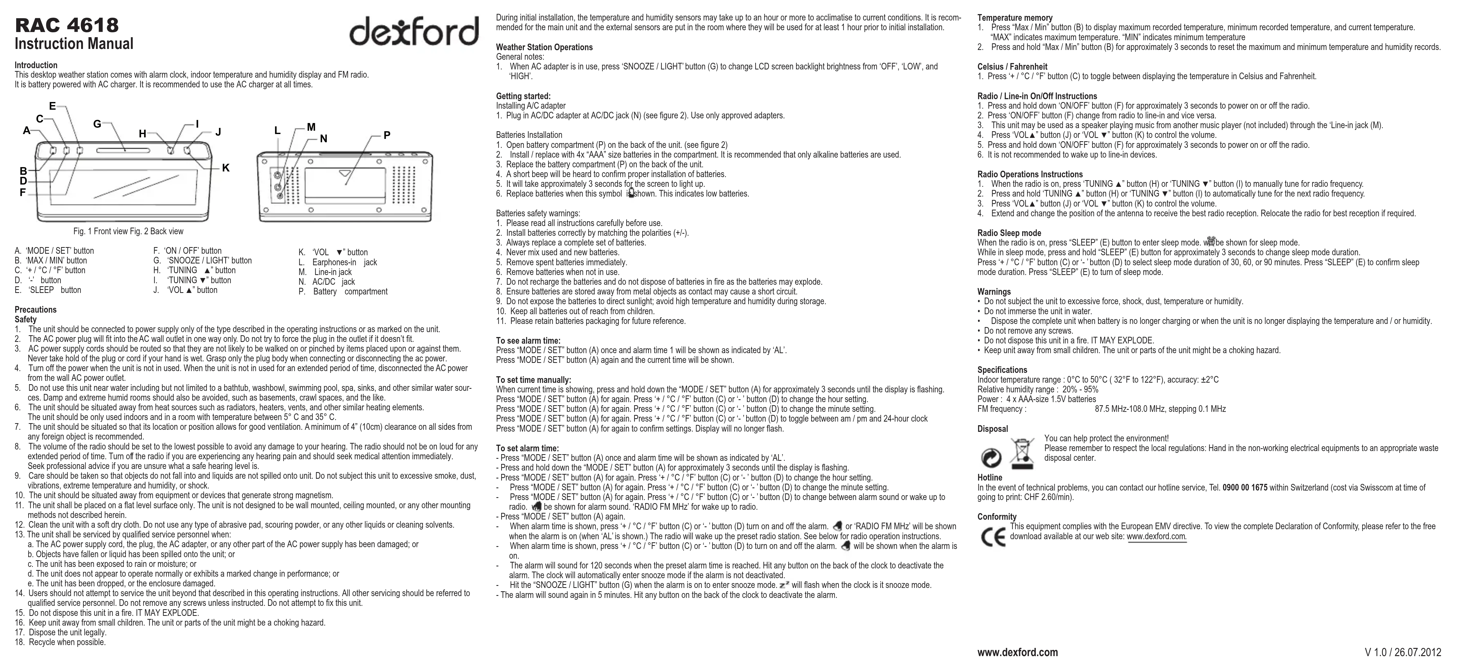 Retrouvez gratuitement la notice de l'appareil RAC 4618 Dexford au format PDF.