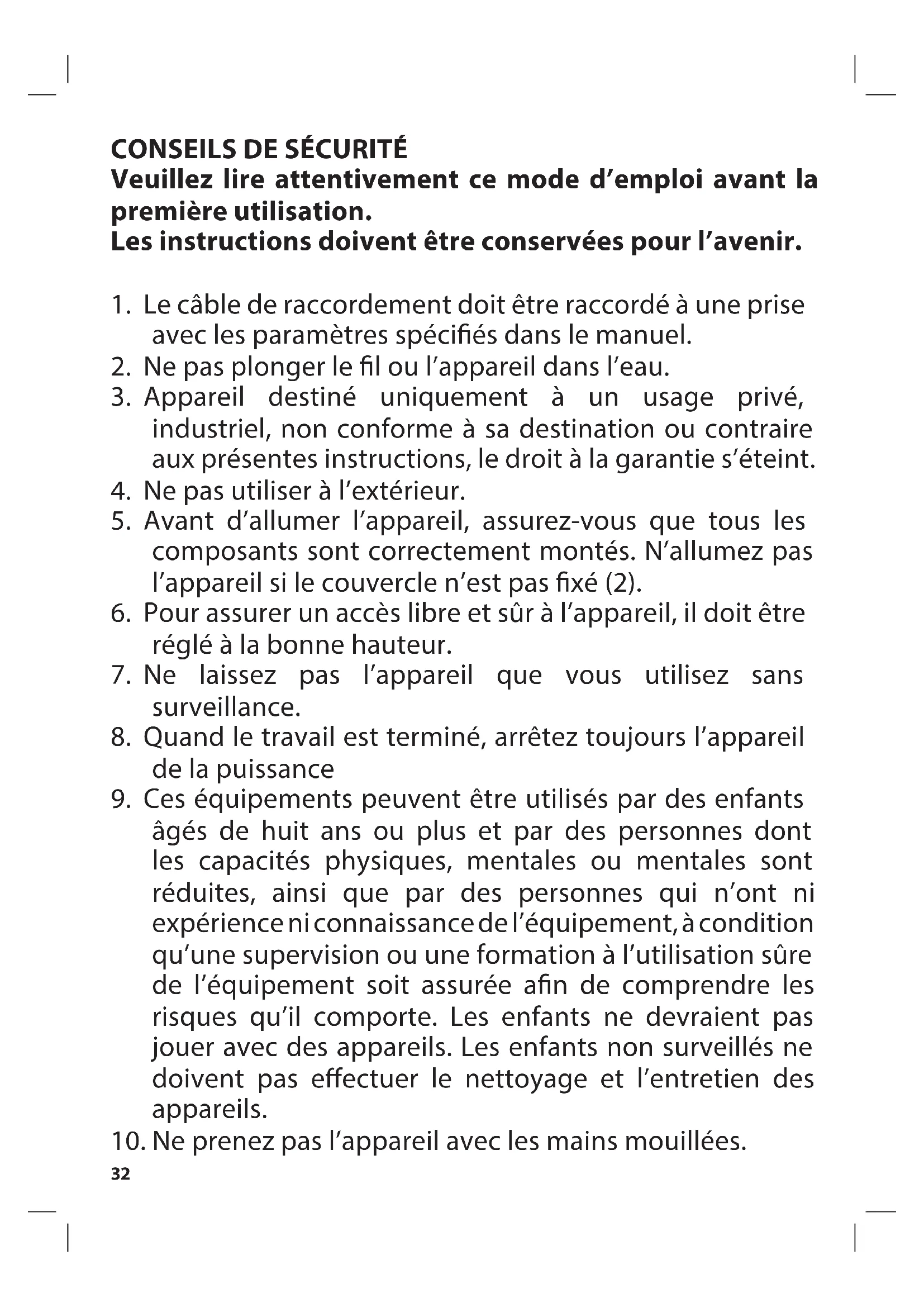 9. Ces équipements peuvent être utilisés par des enfants
