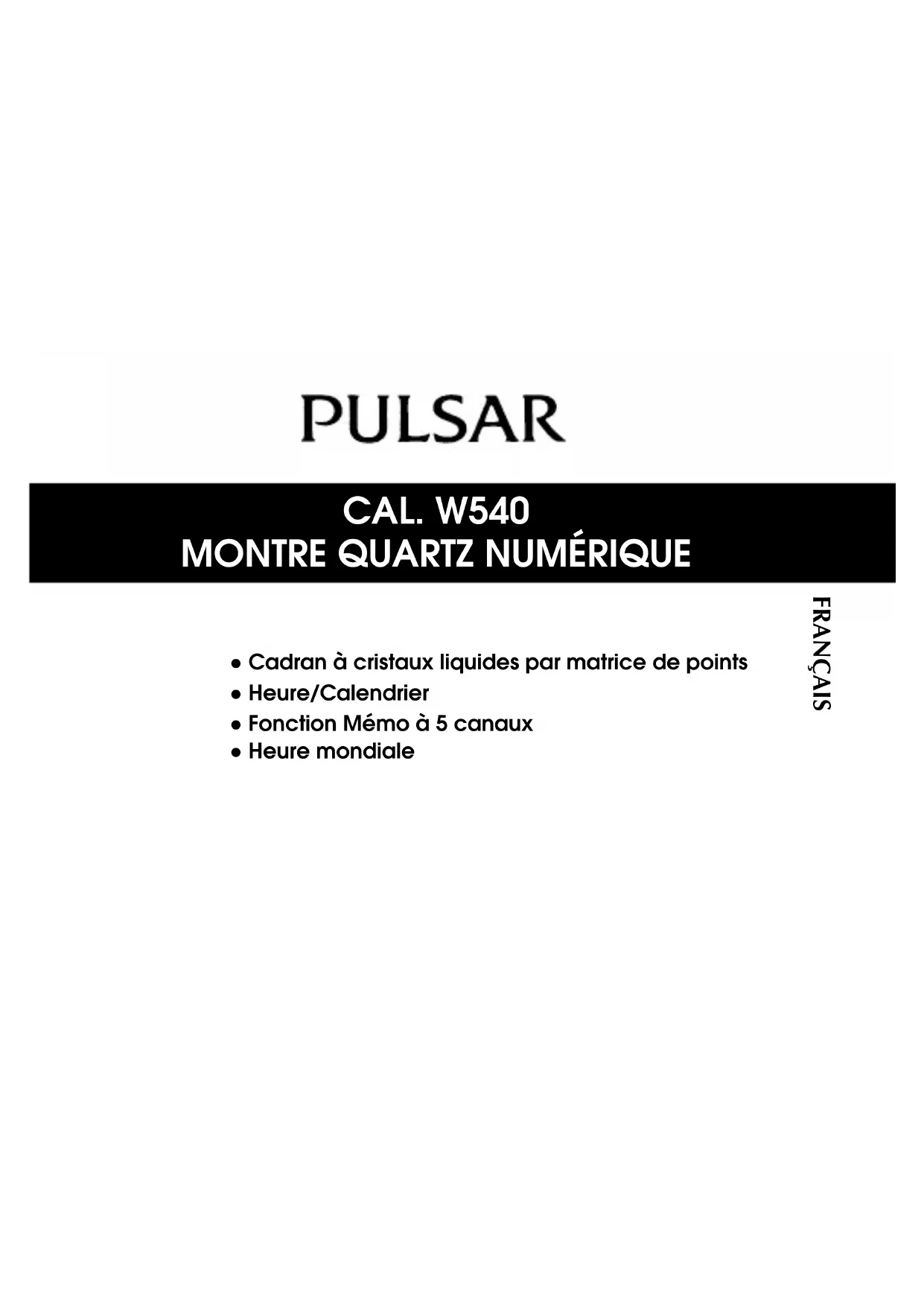 W540 - Montre PULSAR - Notice d'utilisation et mode d'emploi gratuit