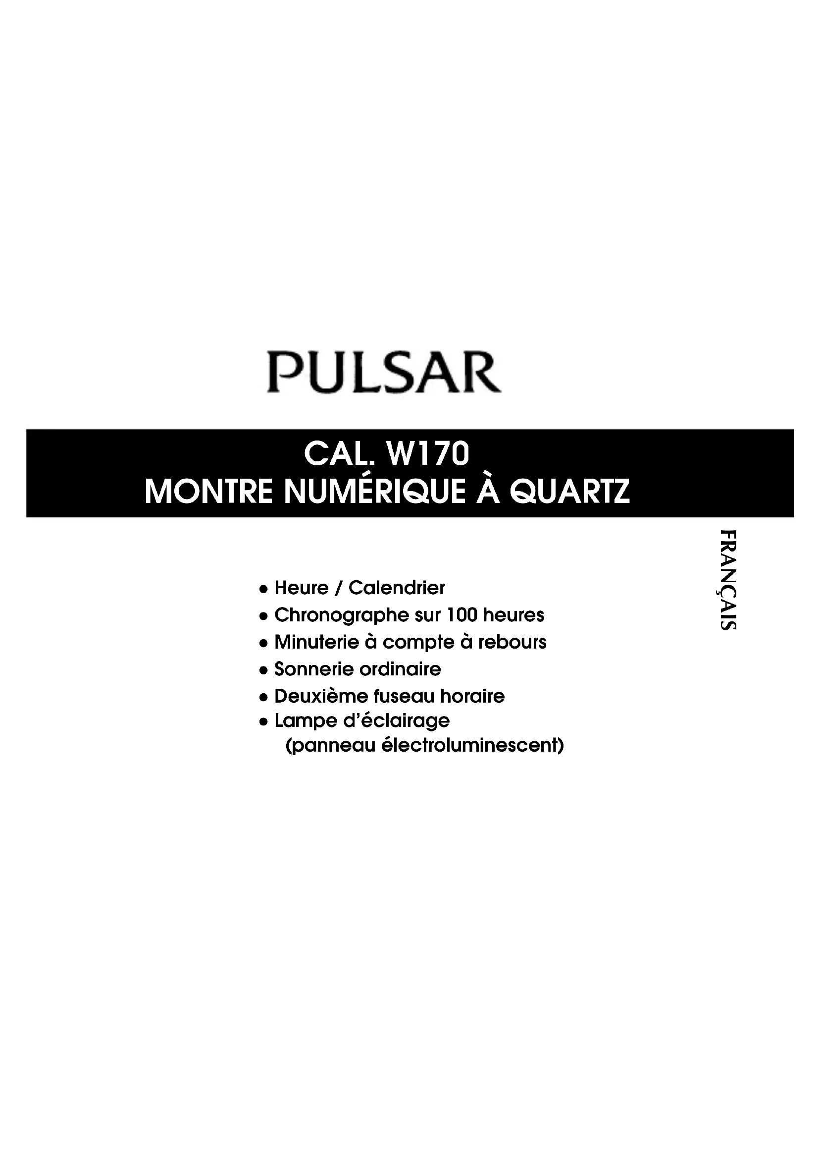 W170 - Montre PULSAR - Notice d'utilisation et mode d'emploi gratuit