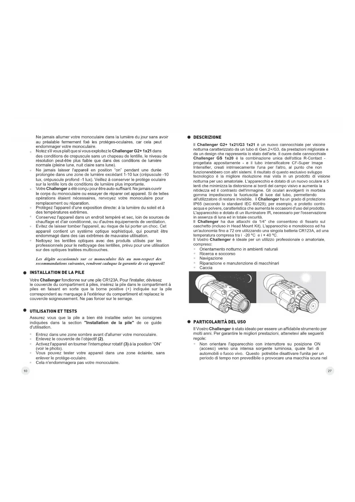 Votre monoculaire vision nocturne Challenger est conçu pour vous fournir de nombreuses années de bons et loyaux services. Afin d'en garantir la meilleure performance, nous vous conseillons de suivre les règles suivantes: