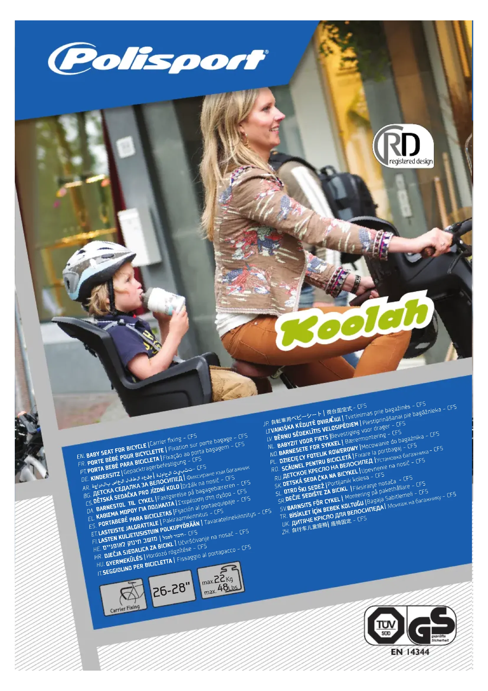 Le portebébe ne peut être utilisé que sur portebagages prévu pour une charge de 25 kg en accord avec la norme EN14872.