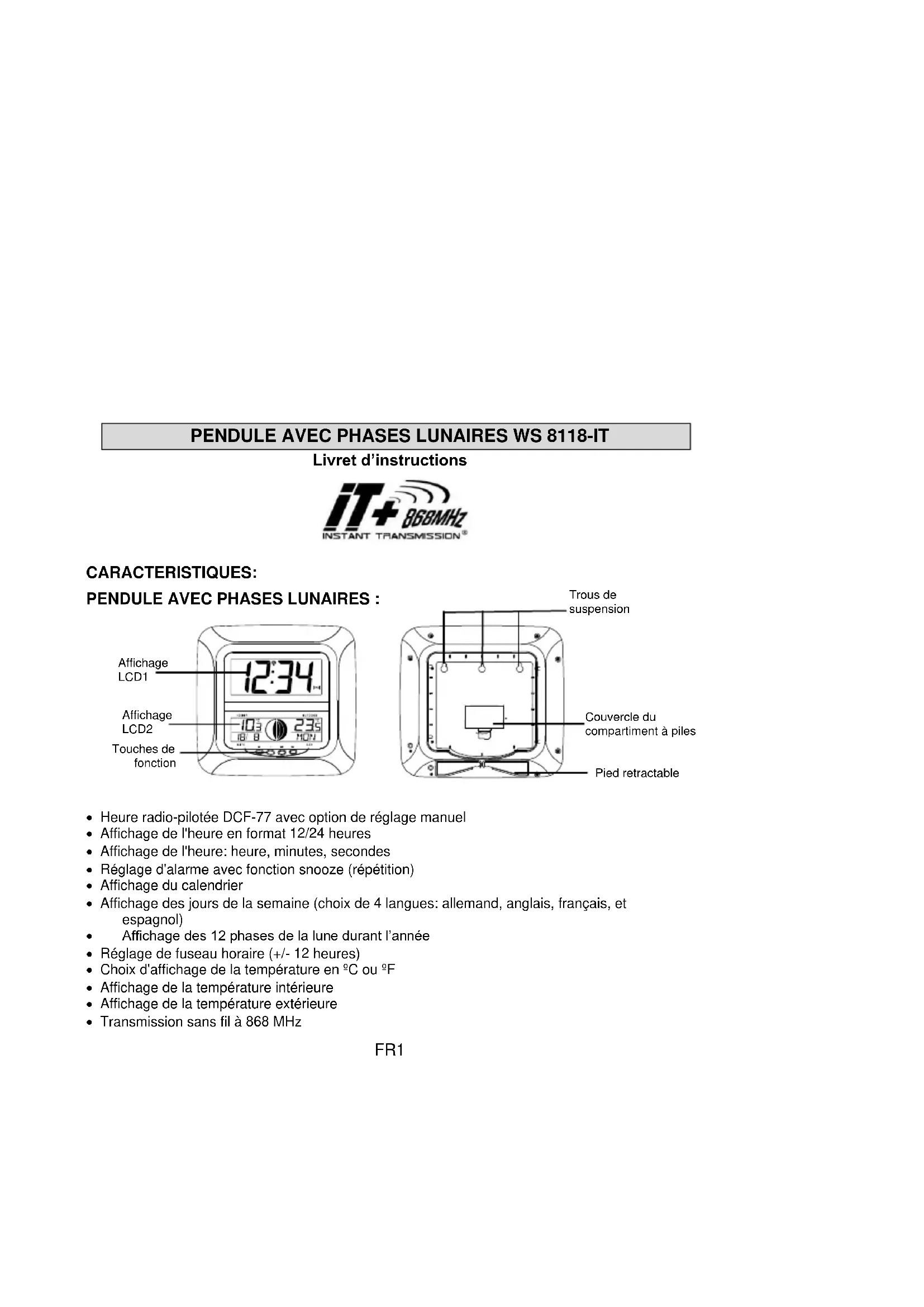 MODE D'EMPLOI WS 8118 TECHNOLINE
