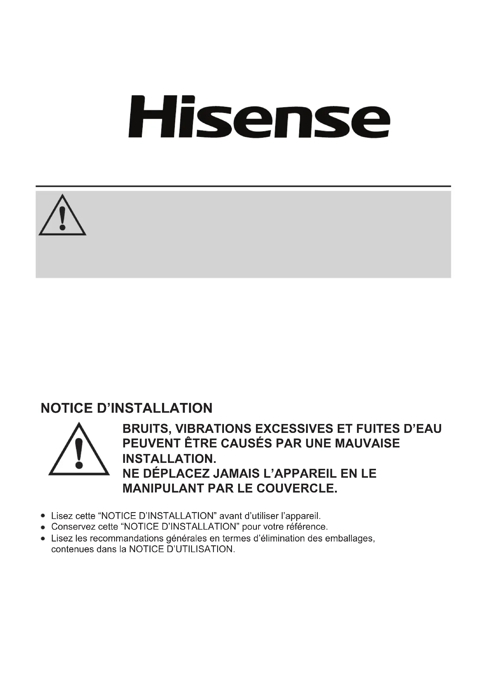 Retrouvez gratuitement la notice de l'appareil WFNA9012 HISENSE au format PDF.
