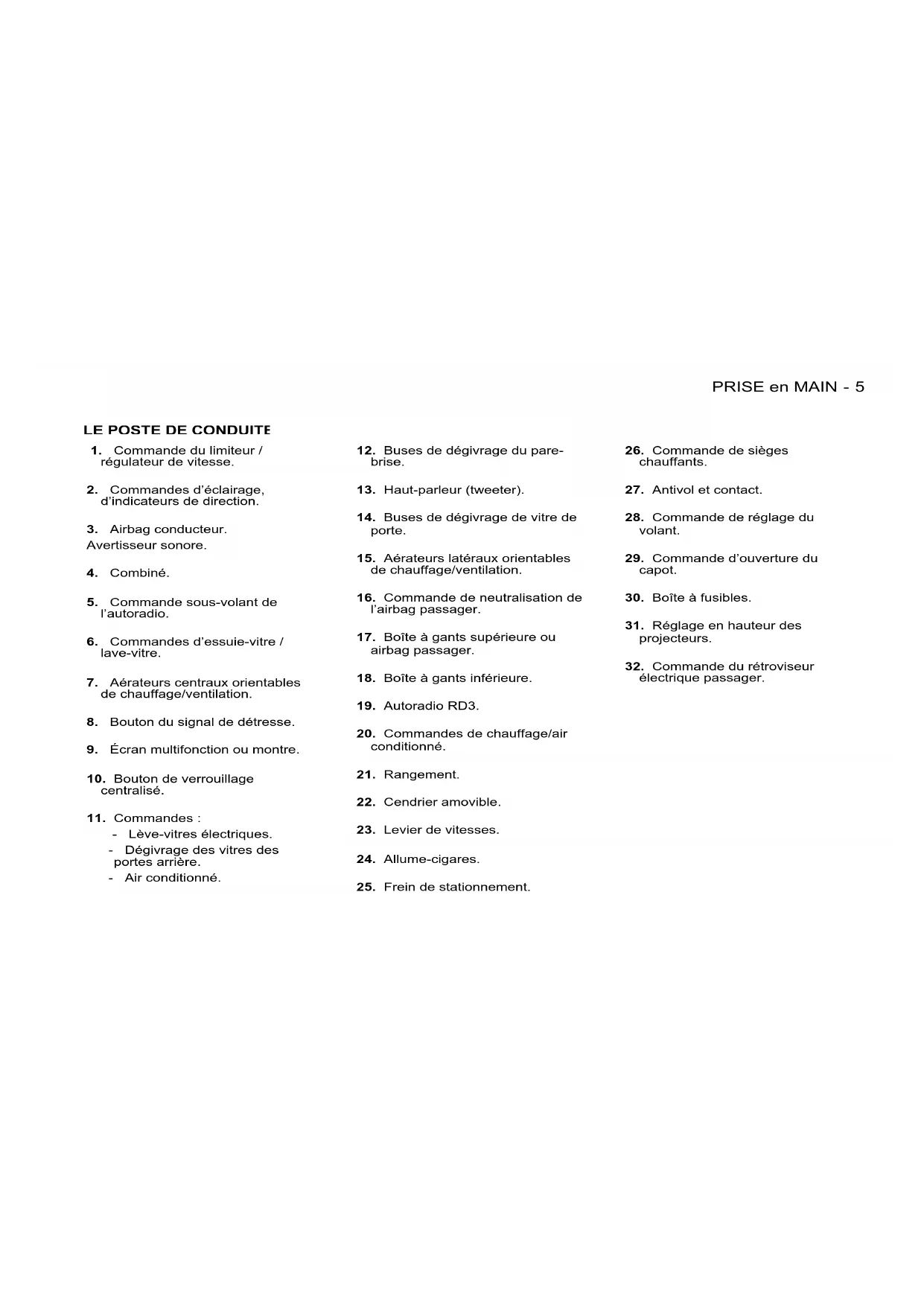 Quand les véhicules en sont équipés, les fonctions limi- teur et régulateur de vitesse ne peuvent pas être activées en même temps.PRISE en MAIN