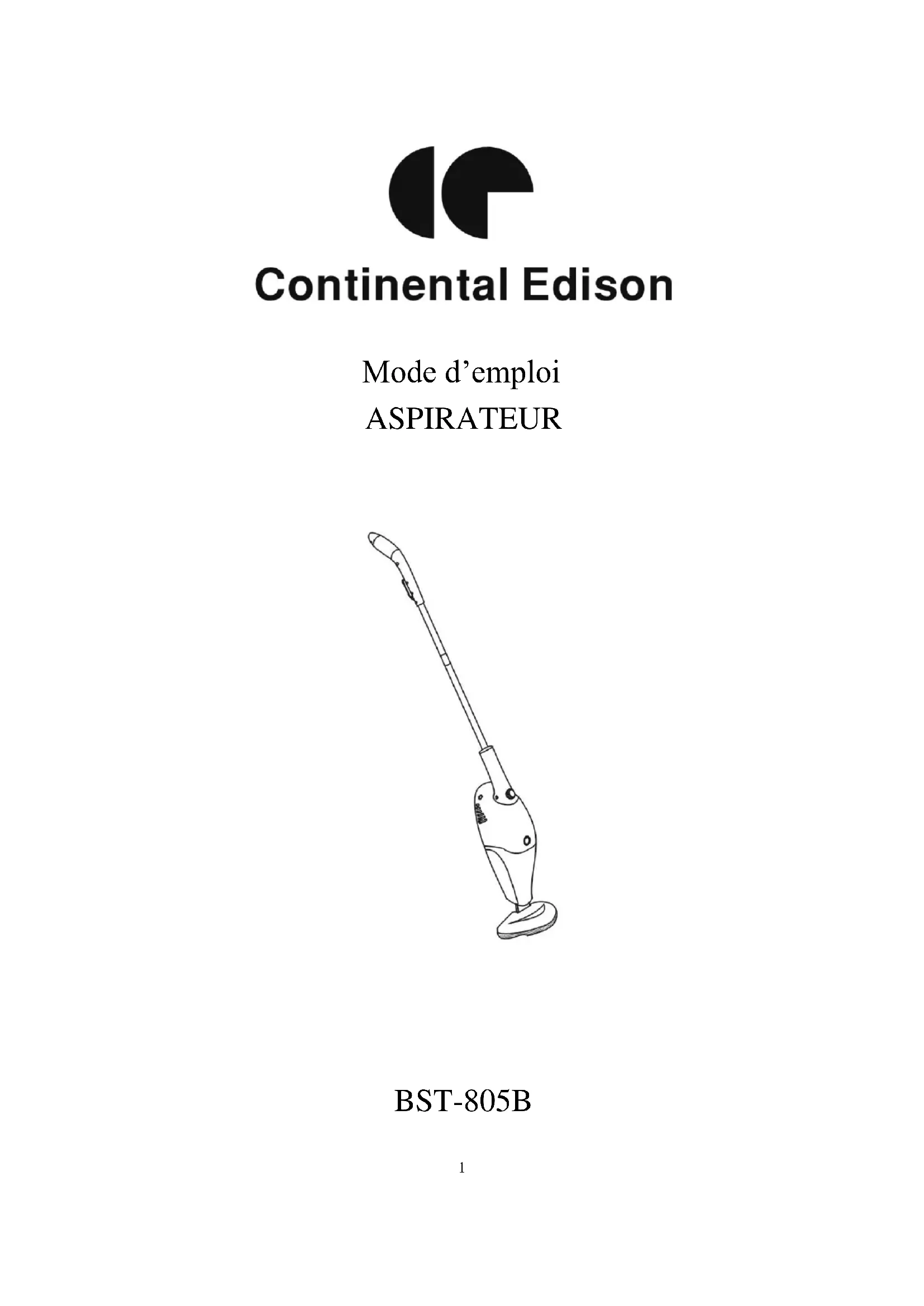 BST805G - Aspirateur CONTINENTAL EDISON - Notice d'utilisation et mode d'emploi gratuit