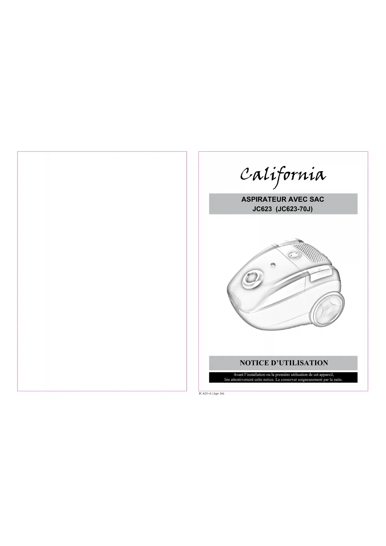 JC623 - Aspirateur CALIFORNIA - Notice d'utilisation et mode d'emploi gratuit