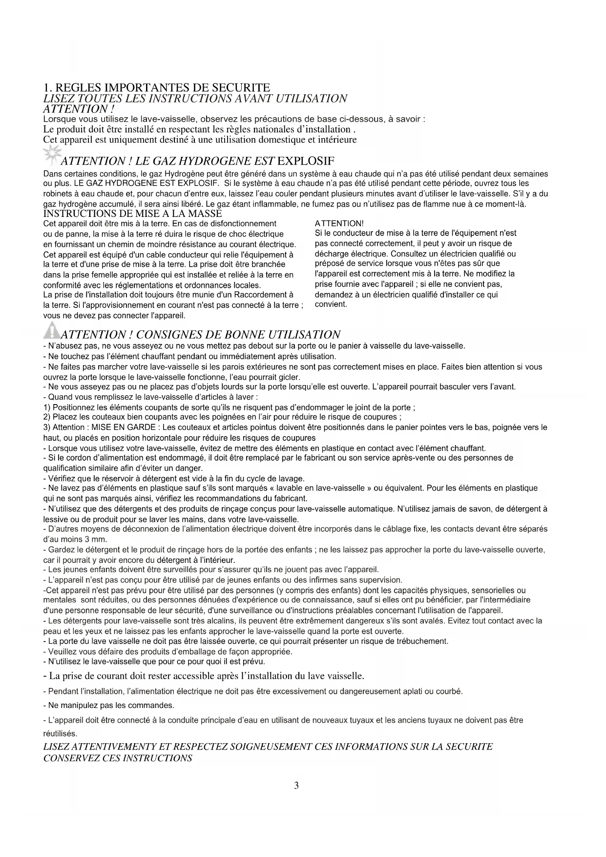 ATTENTION ! CONSIGNES DE BONNE UTILISATION