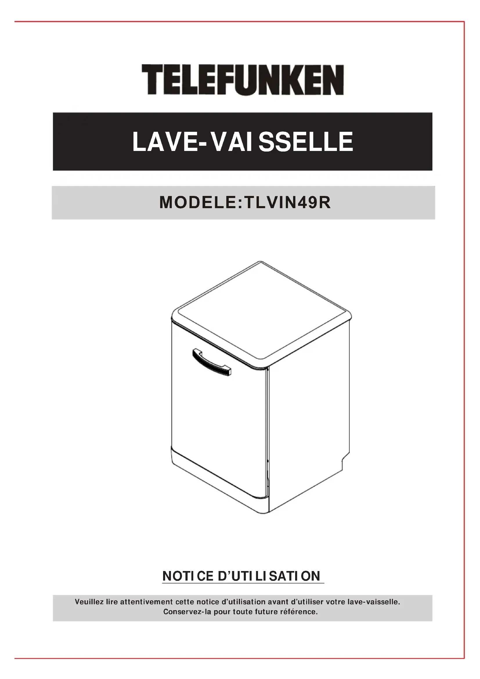 TLVIN49R - Lave-vaisselle TELEFUNKEN - Notice d'utilisation et mode d'emploi gratuit