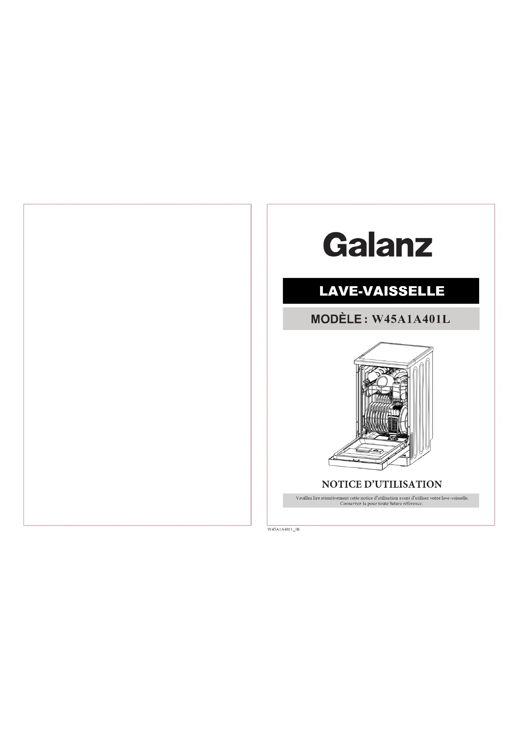 W45A1A401L - Lave-vaisselle Galanz - Notice d'utilisation et mode d'emploi gratuit