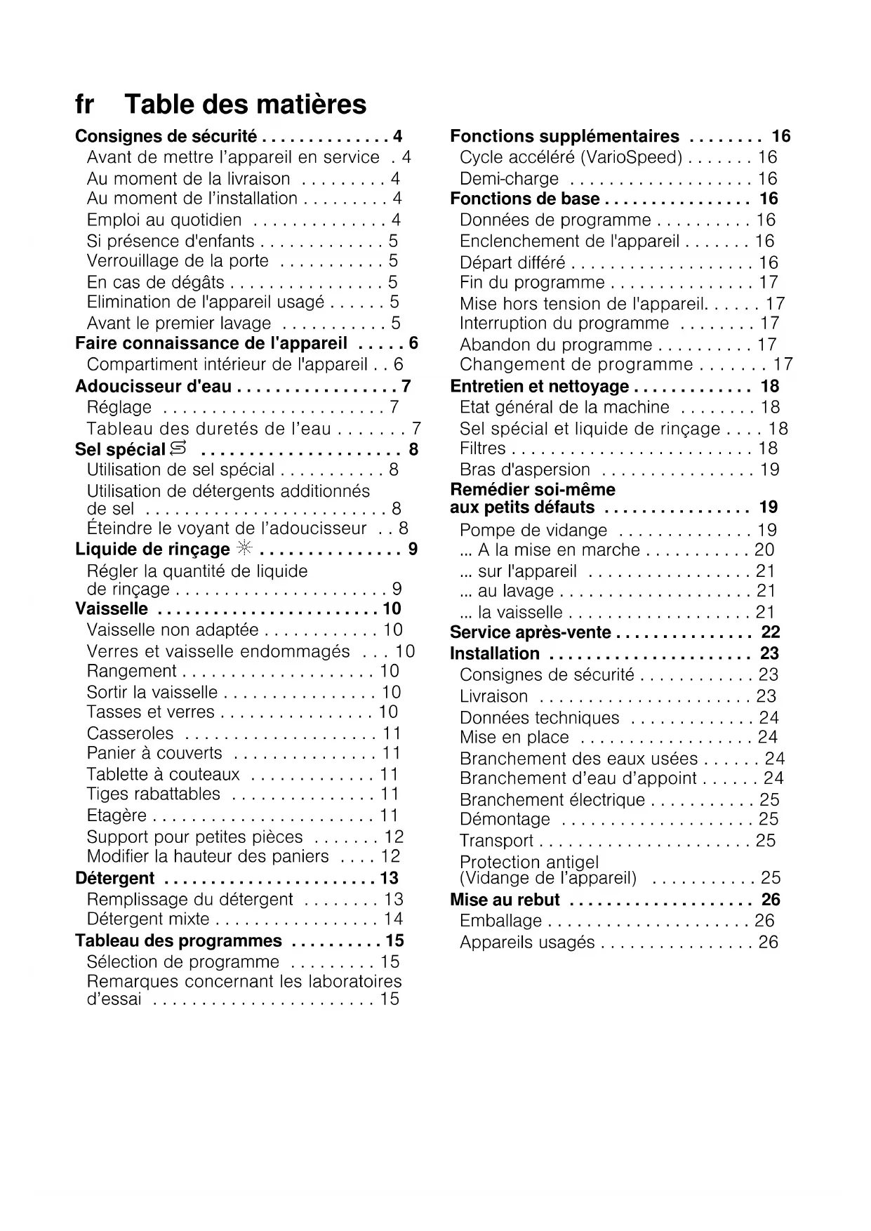 - Sel spécial et liquide de rinçage p. 18