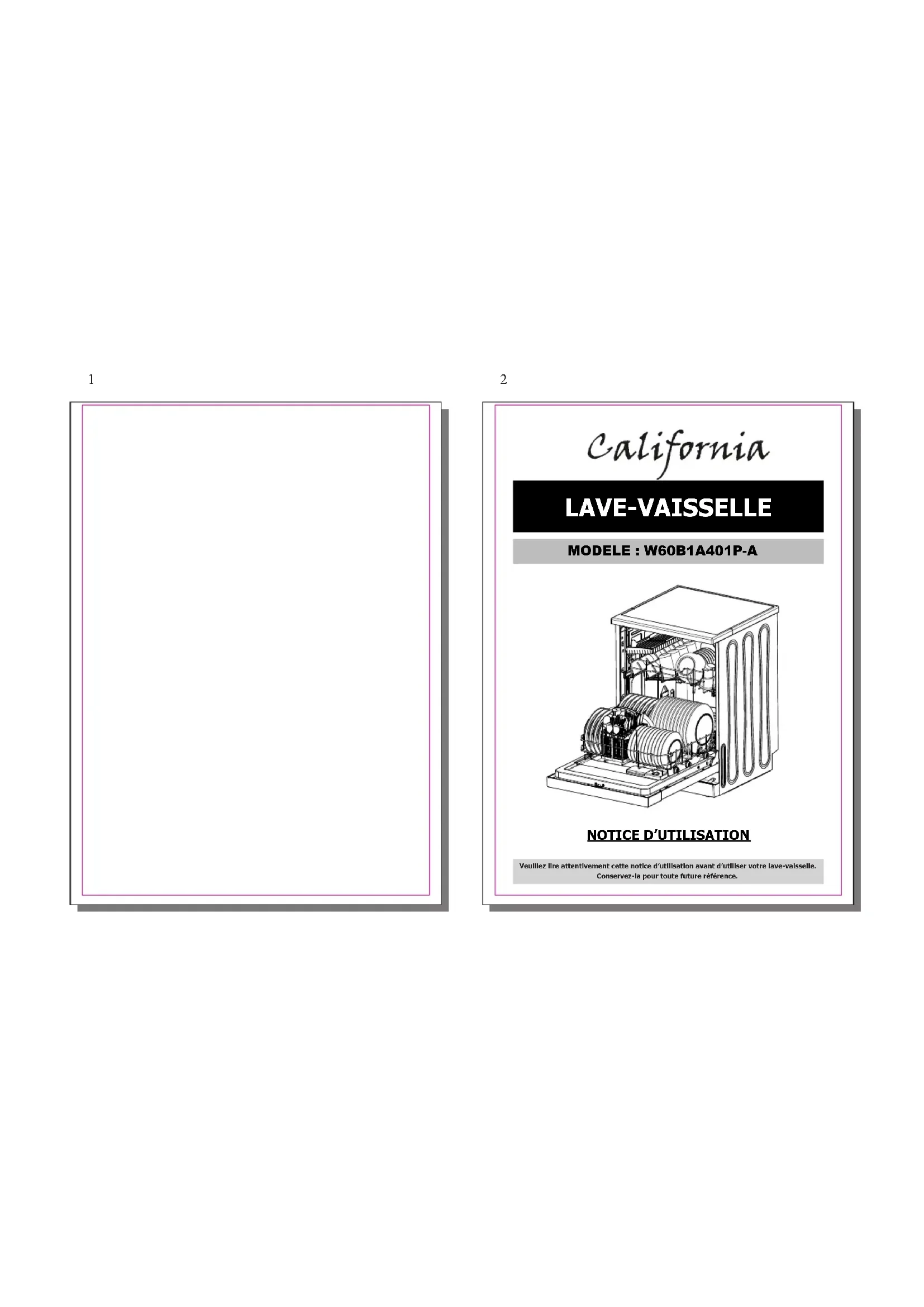 W60B1A401PA - Lave-vaisselle CALIFORNIA - Notice d'utilisation et mode d'emploi gratuit