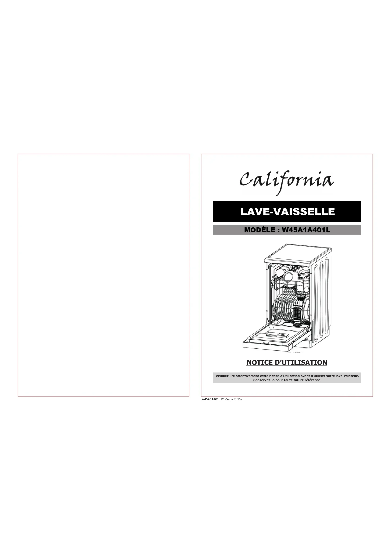 W45A1A401L - Lave-vaisselle CALIFORNIA - Notice d'utilisation et mode d'emploi gratuit