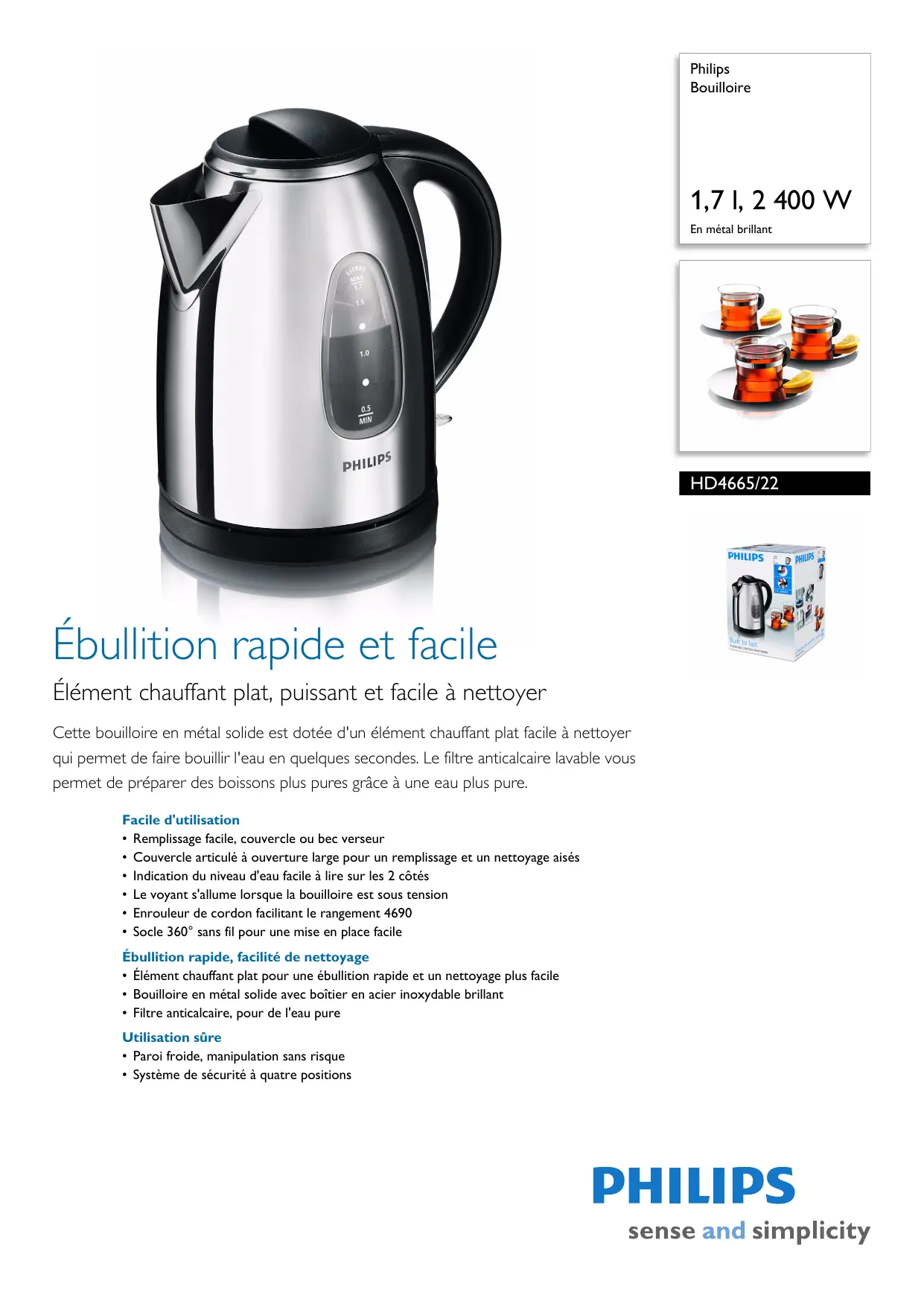 HD 4665 - BROCHURE - Bouilloire PHILIPS - Notice d'utilisation et mode d'emploi gratuit