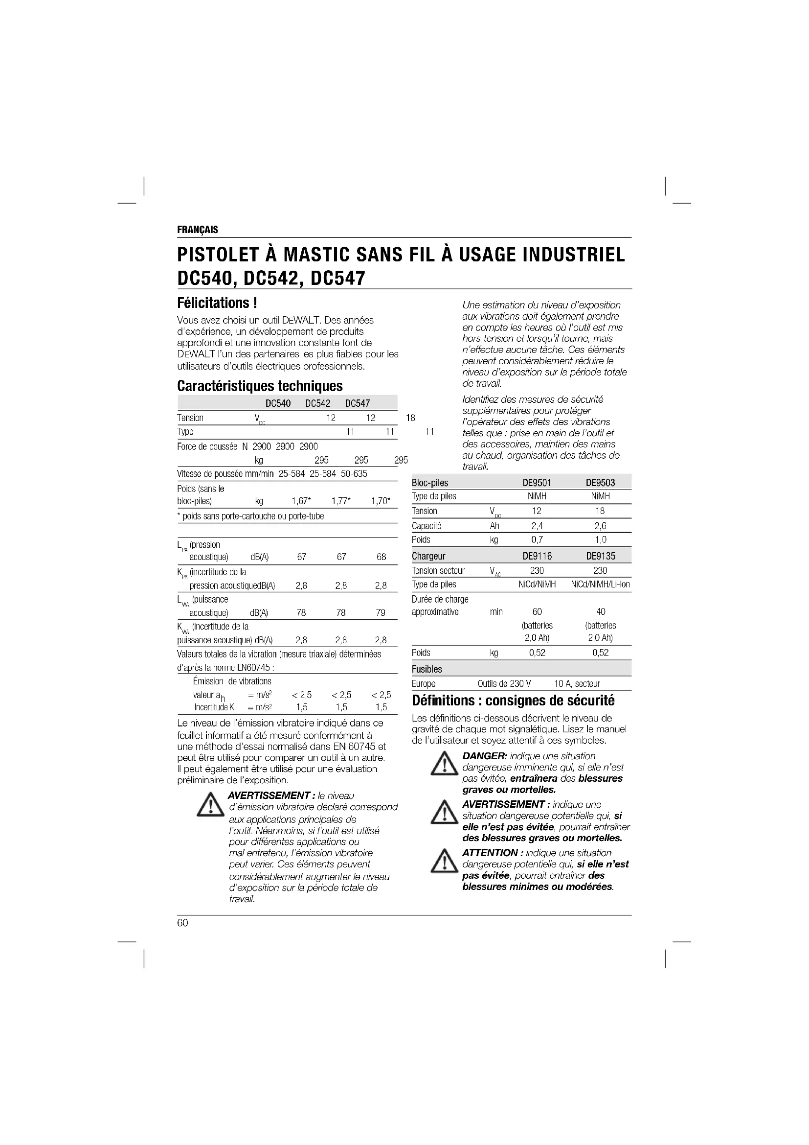Retrouvez gratuitement la notice de l'appareil DC540 DEWALT au format PDF.
