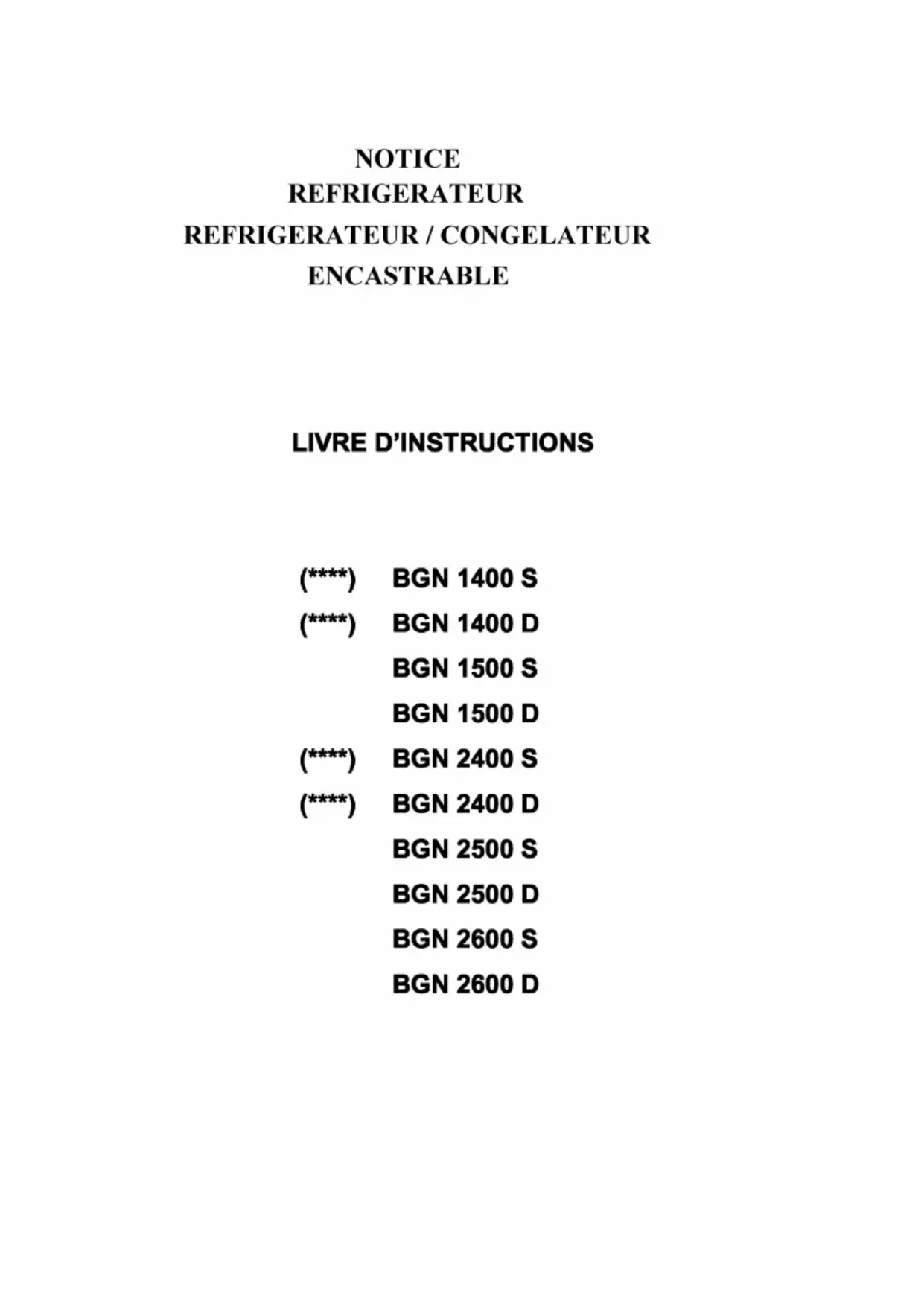 BGN2600D - Réfrigérateur BAUMATIC - Notice d'utilisation et mode d'emploi gratuit