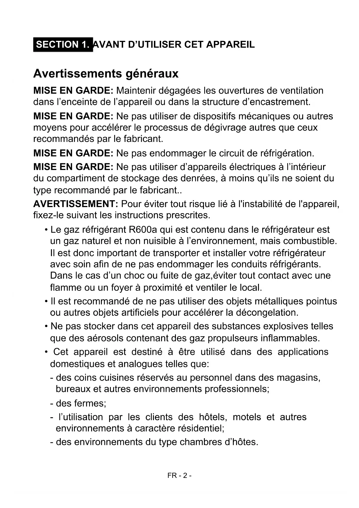 SECTION 1. AVANT D'UTILISER CET APPAREIL