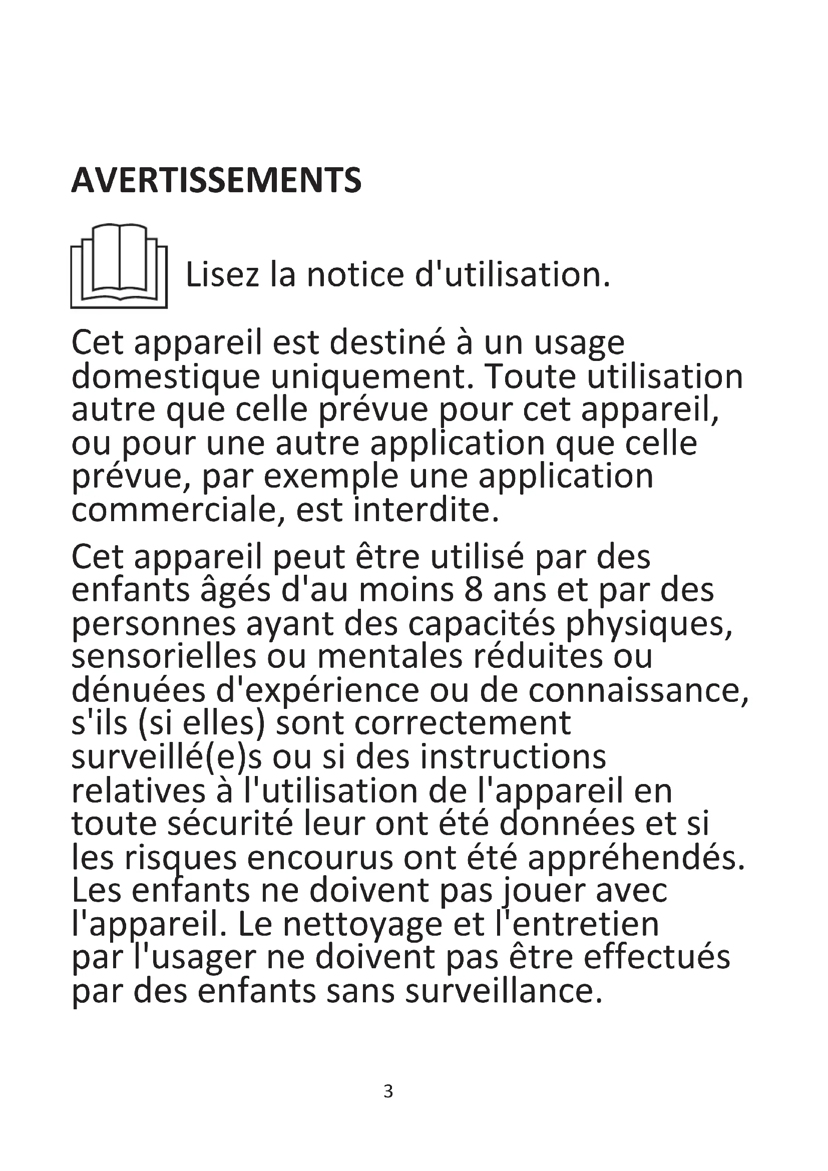 - l'appareil est placé sur une surface stable.
