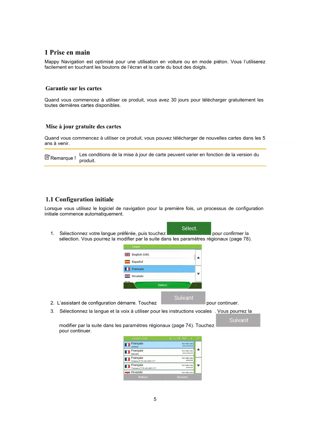 3. Sélectionnez la langue et la voix à utiliser pour les instructions vocales . Vous pourrez la