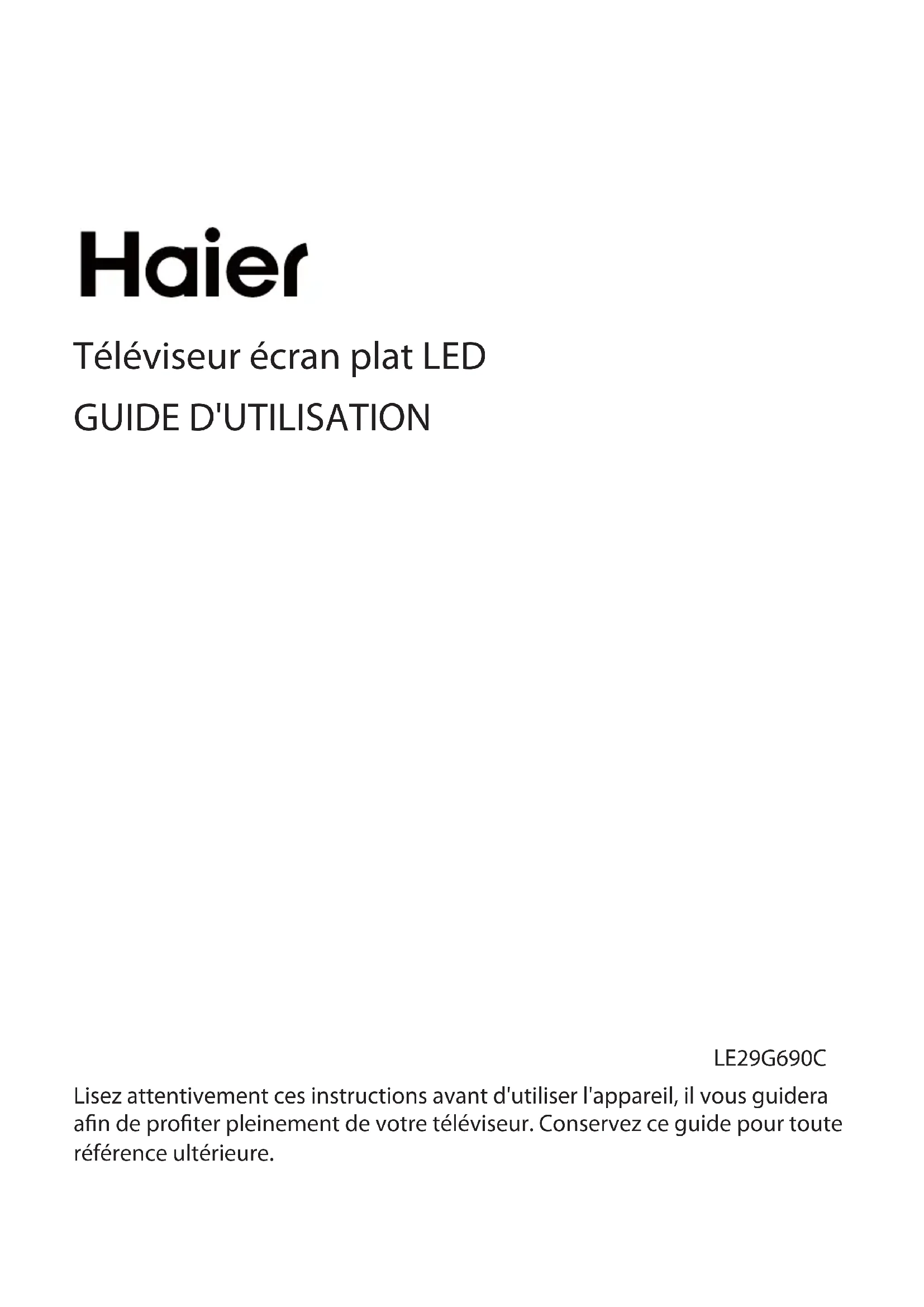 LE29G690C - Téléviseur HAIER - Notice d'utilisation et mode d'emploi gratuit