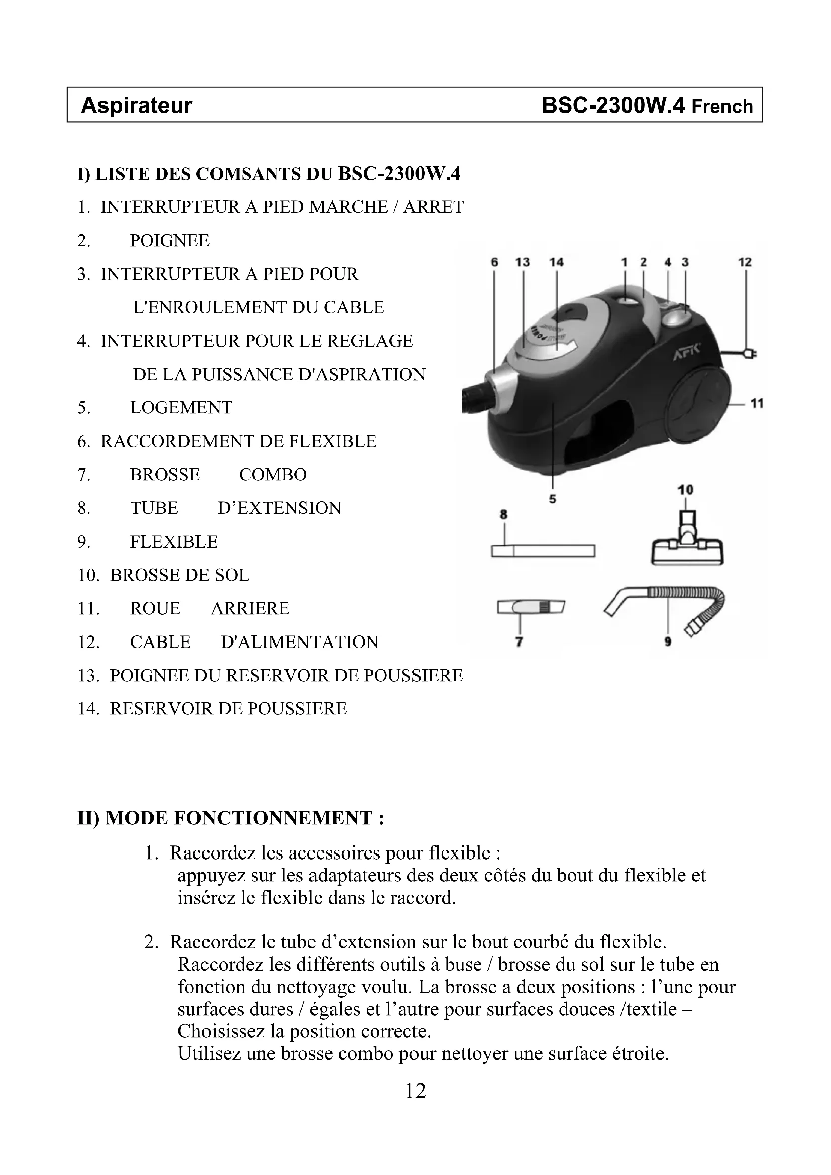 BSC2300W.4 - Aspirateur AFK - Notice d'utilisation et mode d'emploi gratuit