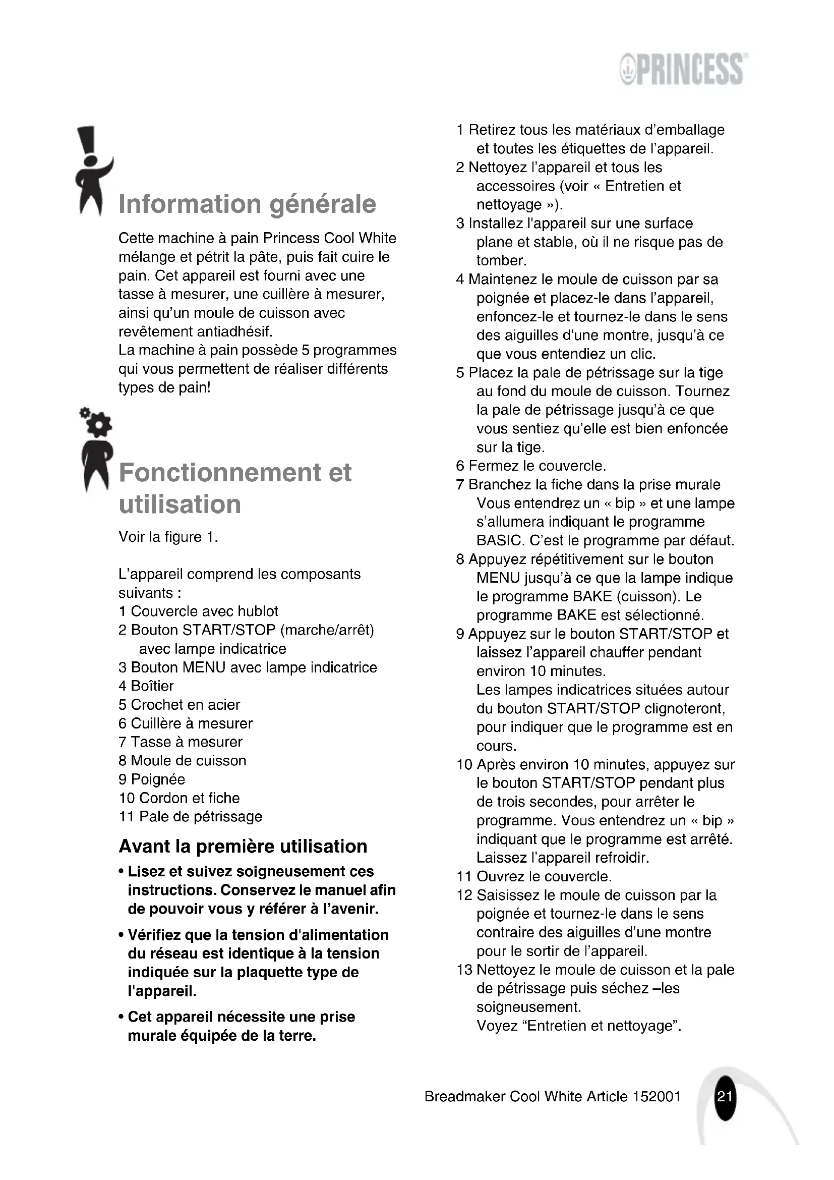 152001 - Machine à pain PRINCESS - Notice d'utilisation et mode d'emploi gratuit