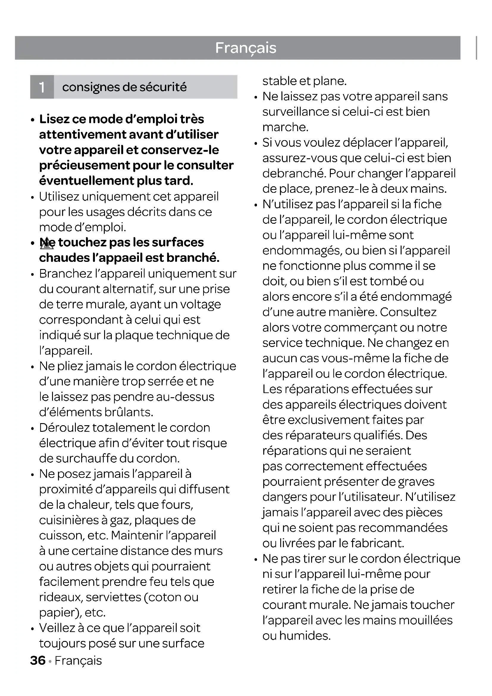 - Ne touchez pas les surfaces chaudes l'appaeil est branché.