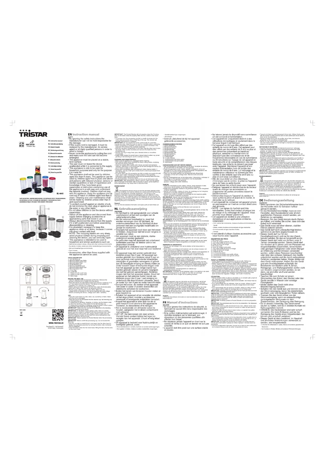 Téléchargez la notice de votre Robot ménager au format PDF gratuitement ! Retrouvez votre notice BL4445 - TRISTAR et reprennez votre appareil électronique en main. Sur cette page sont publiés tous les documents nécessaires à l'utilisation de votre appareil BL4445 de la marque TRISTAR.