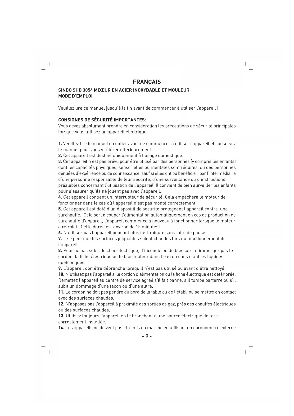 SHB 2054 - Robot ménager SINBO - Notice d'utilisation et mode d'emploi gratuit