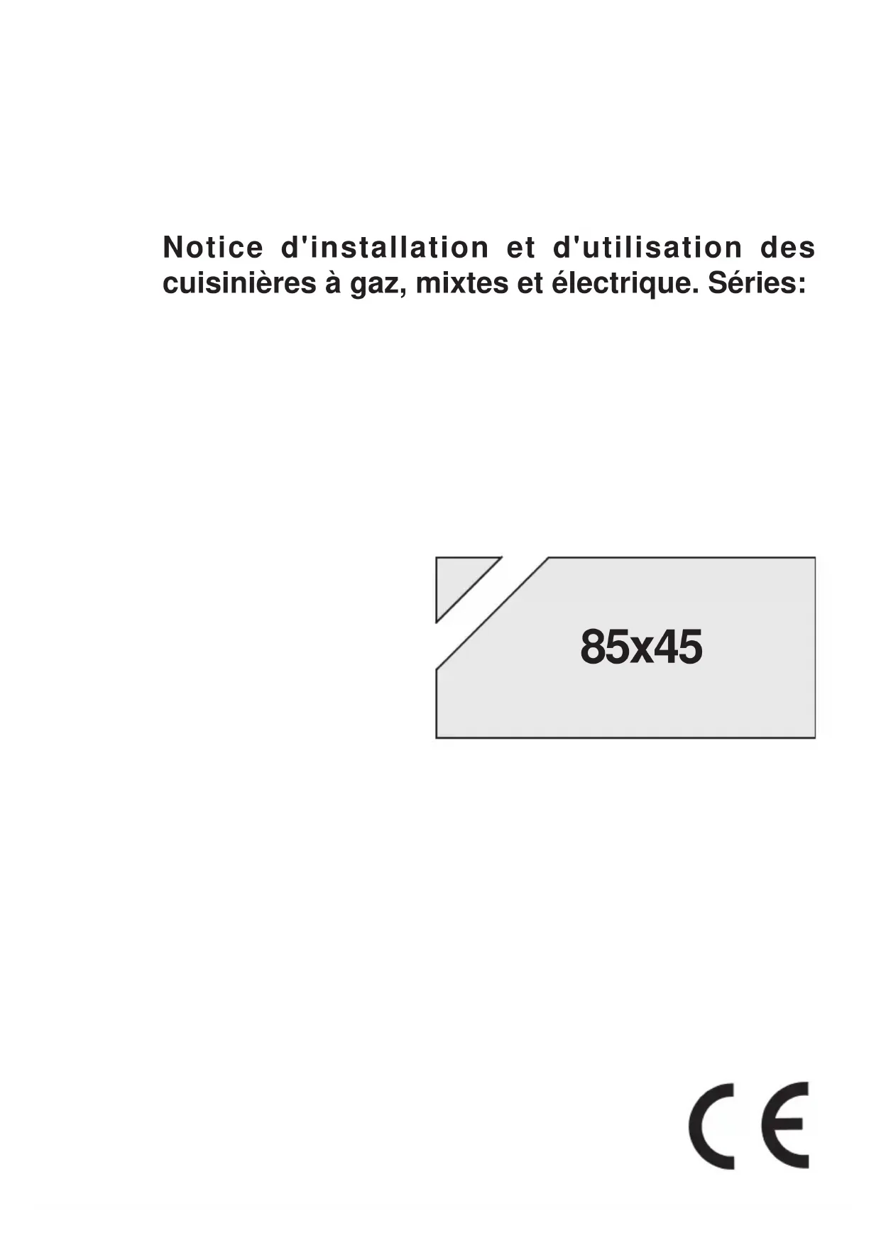 - Notice d'installation et d'utilisation des cuisinières à gaz, mixtes et électrique. Séries: 85x4510 Introduction Index Données et caractéristiques p. 11