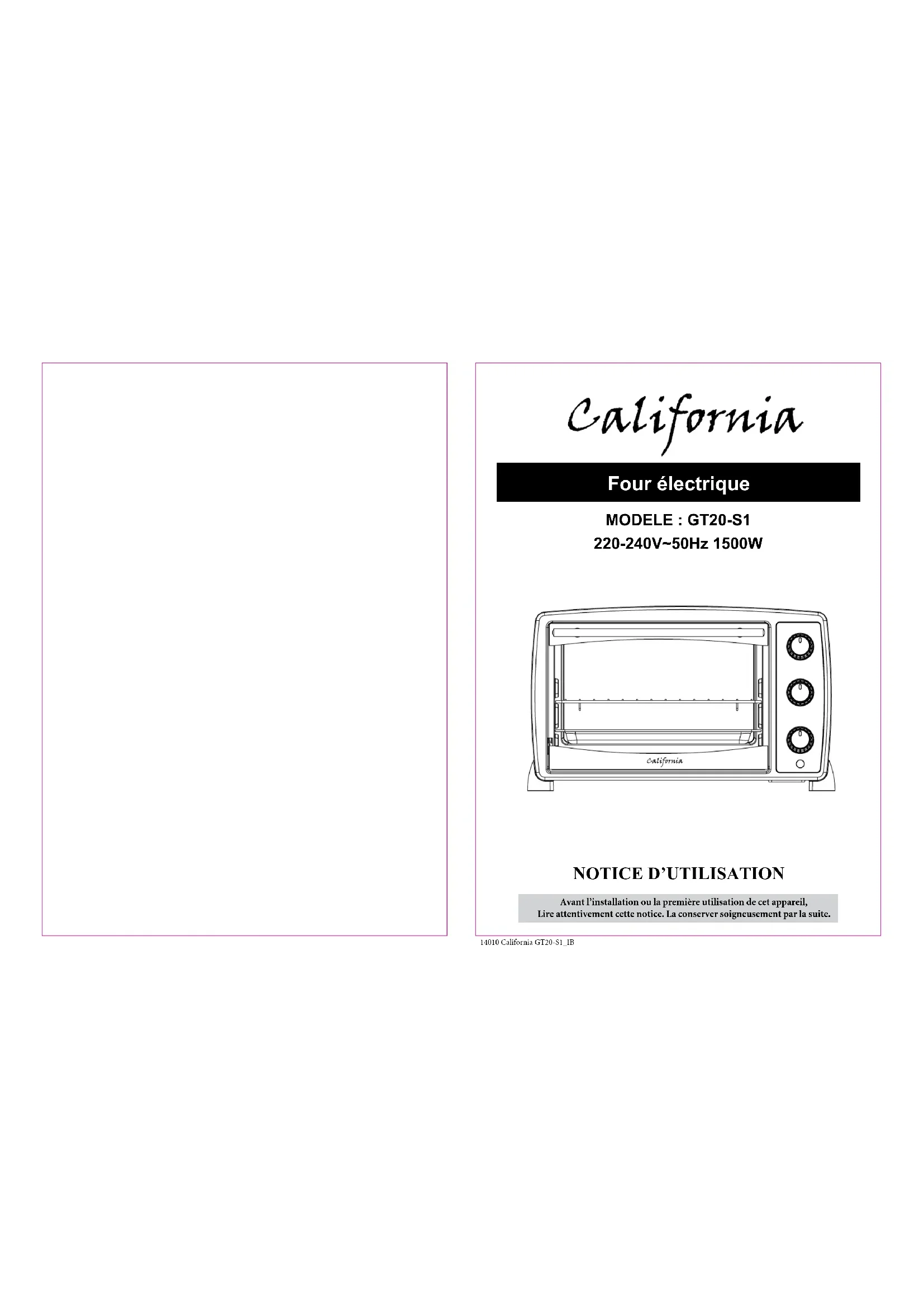 GT20S1 - Four CALIFORNIA - Notice d'utilisation et mode d'emploi gratuit