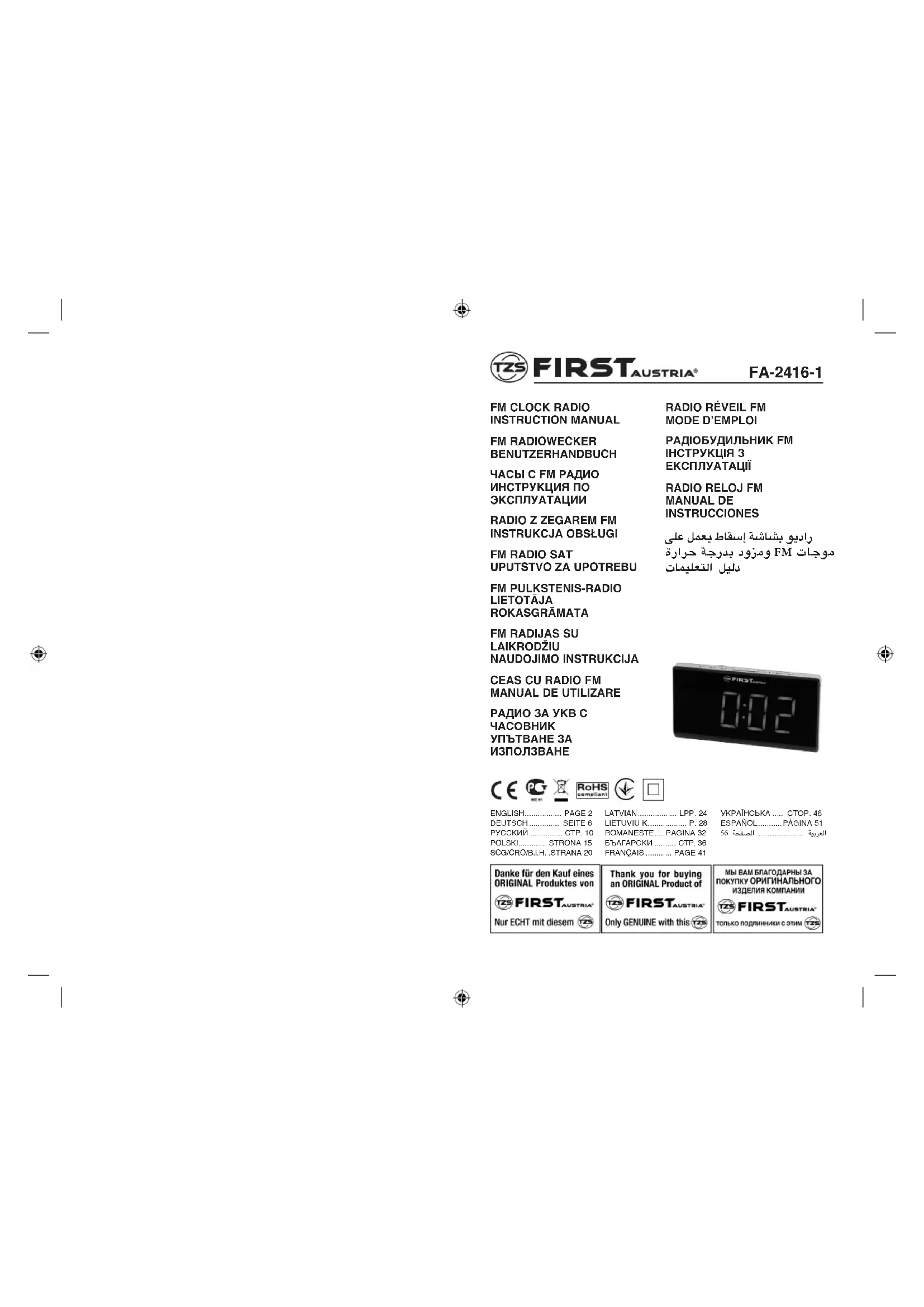 Retrouvez gratuitement la notice de l'appareil FA24161 First Austria au format PDF.