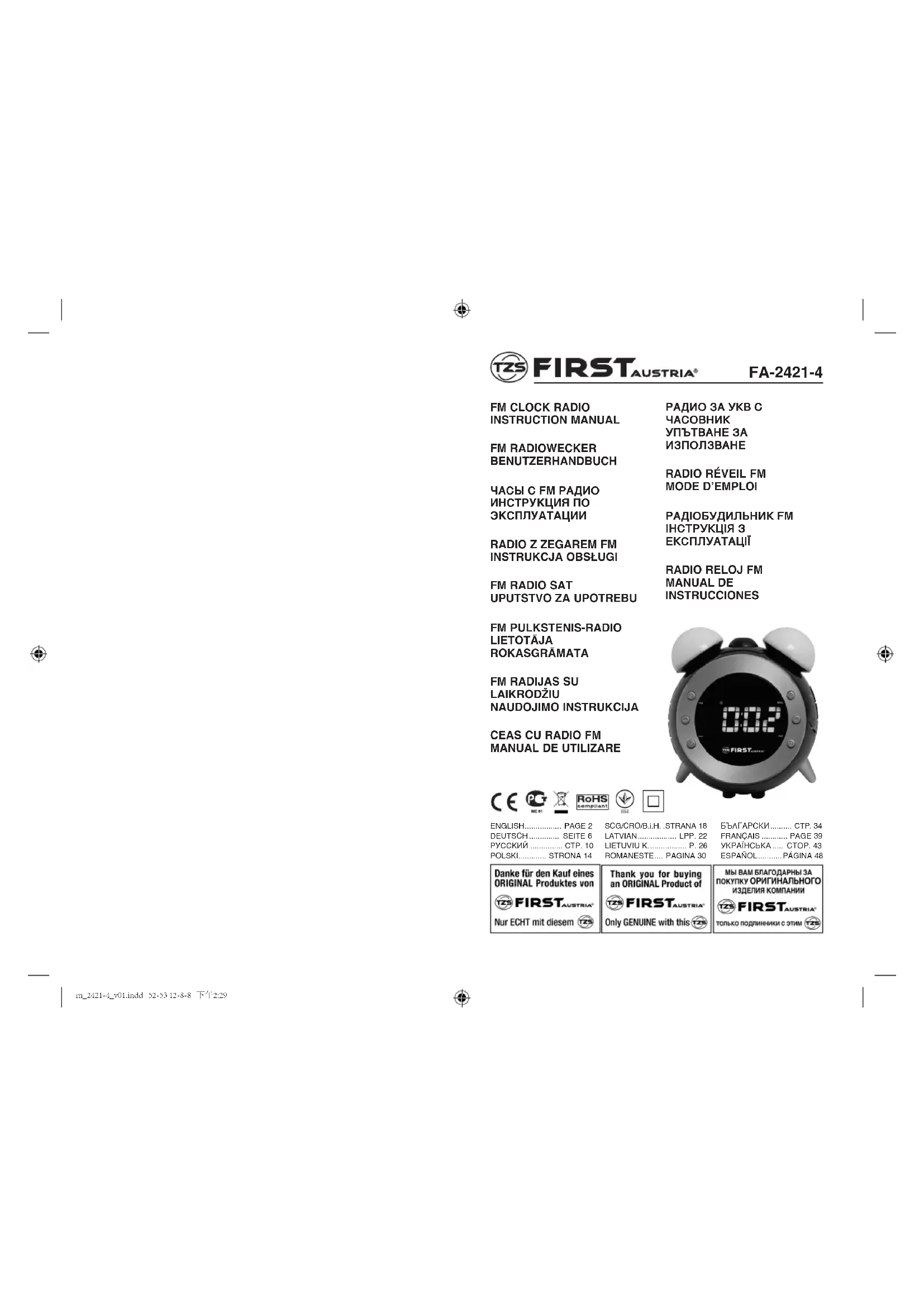 FA24214 - Radio-réveil First Austria - Notice d'utilisation et mode d'emploi gratuit