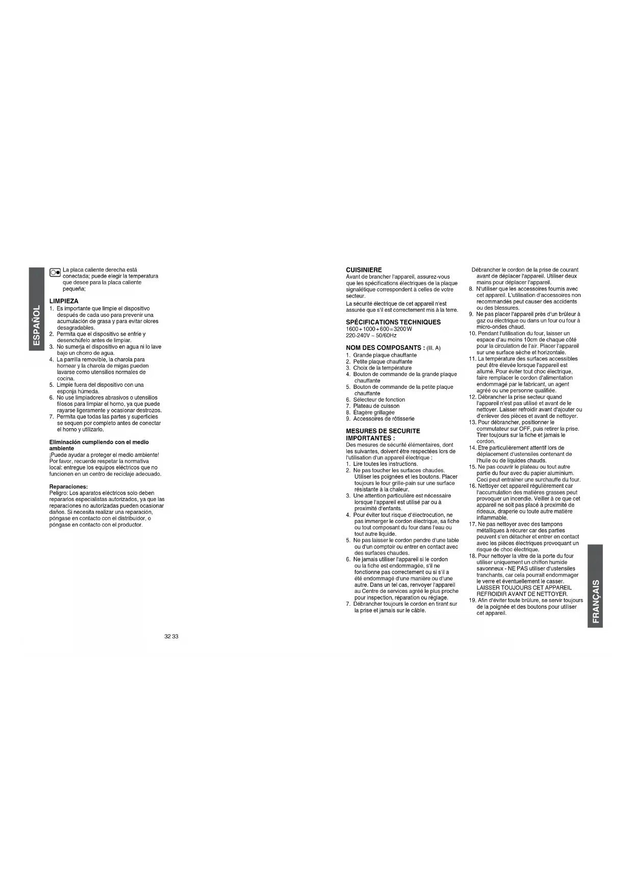 pas immerger le cordon électrique, sa che ou tout composant du four dans l‘eau ou tout autre liquide.