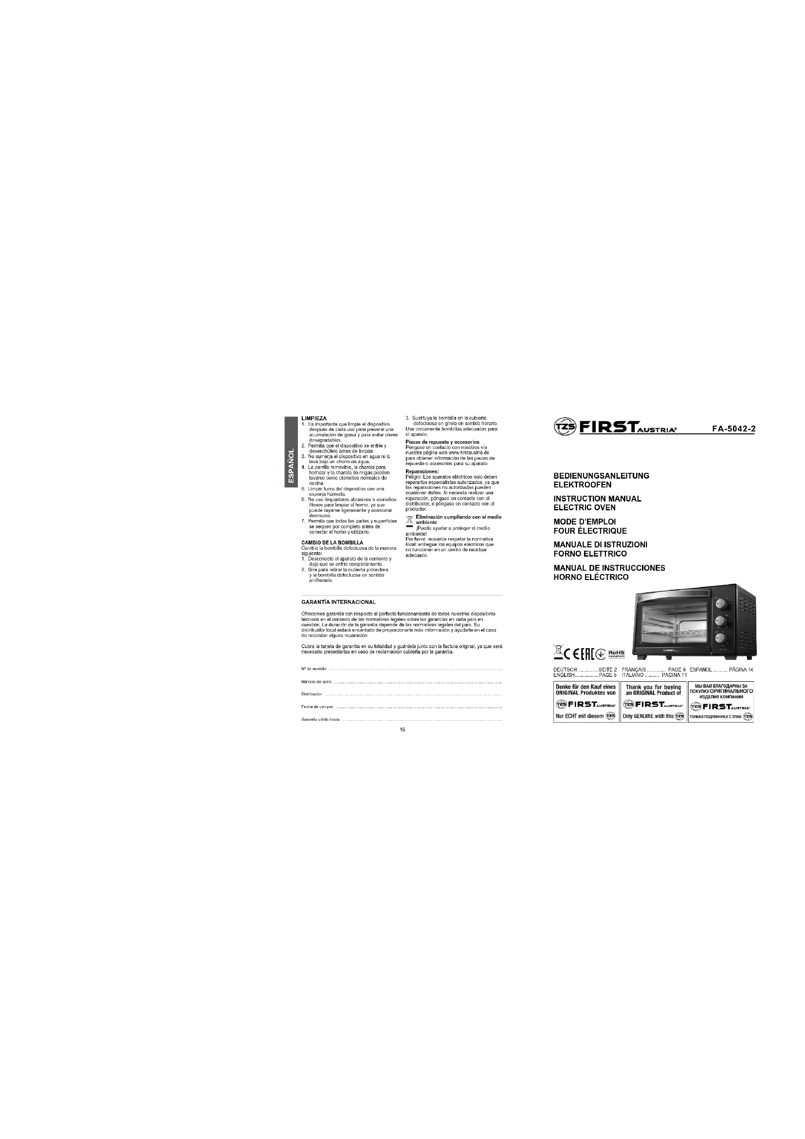 Téléchargez la notice de votre Four au format PDF gratuitement ! Retrouvez votre notice FA50422 - First Austria et reprennez votre appareil électronique en main. Sur cette page sont publiés tous les documents nécessaires à l'utilisation de votre appareil FA50422 de la marque First Austria.