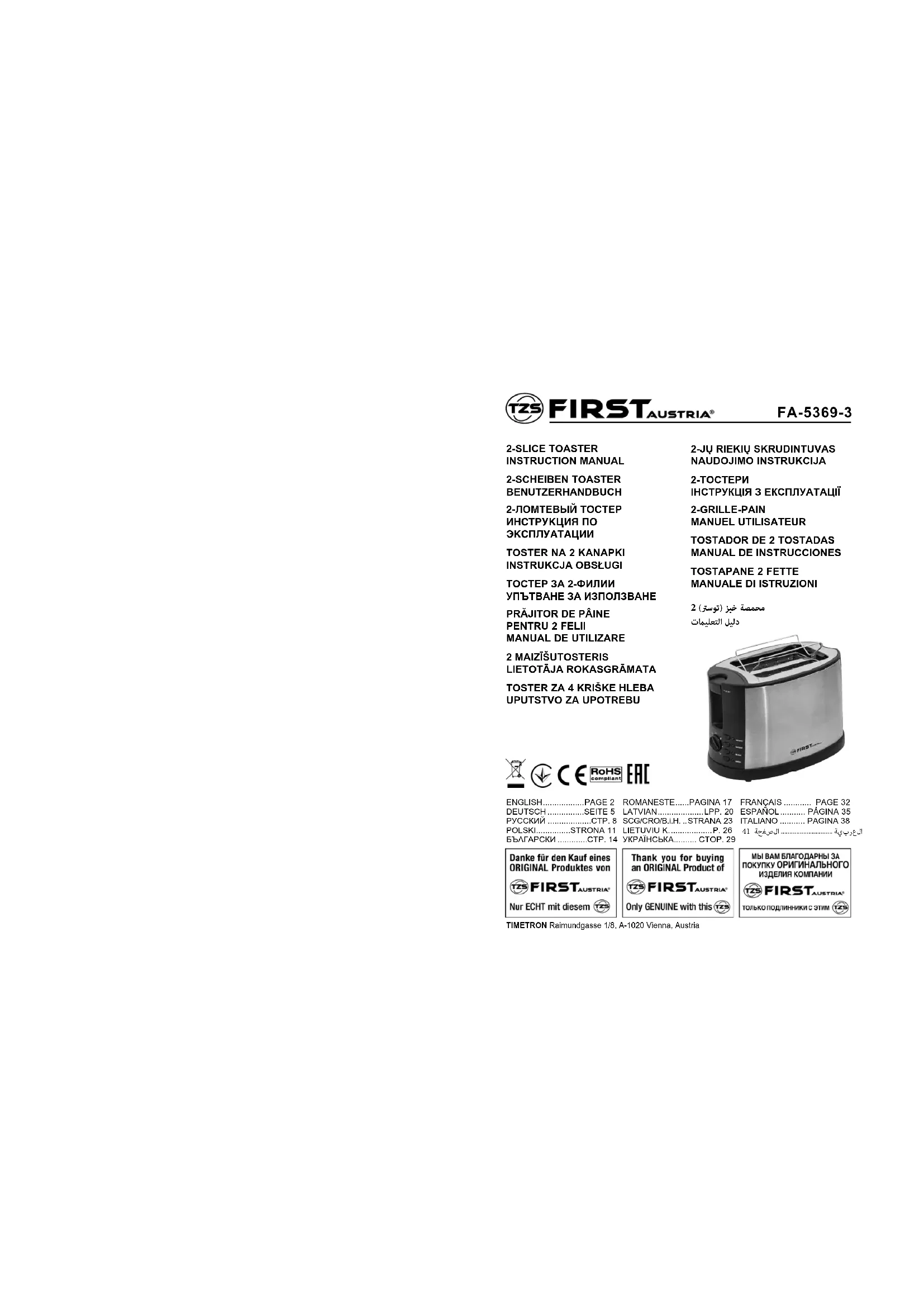 Retrouvez gratuitement la notice de l'appareil FA53693 First Austria au format PDF.